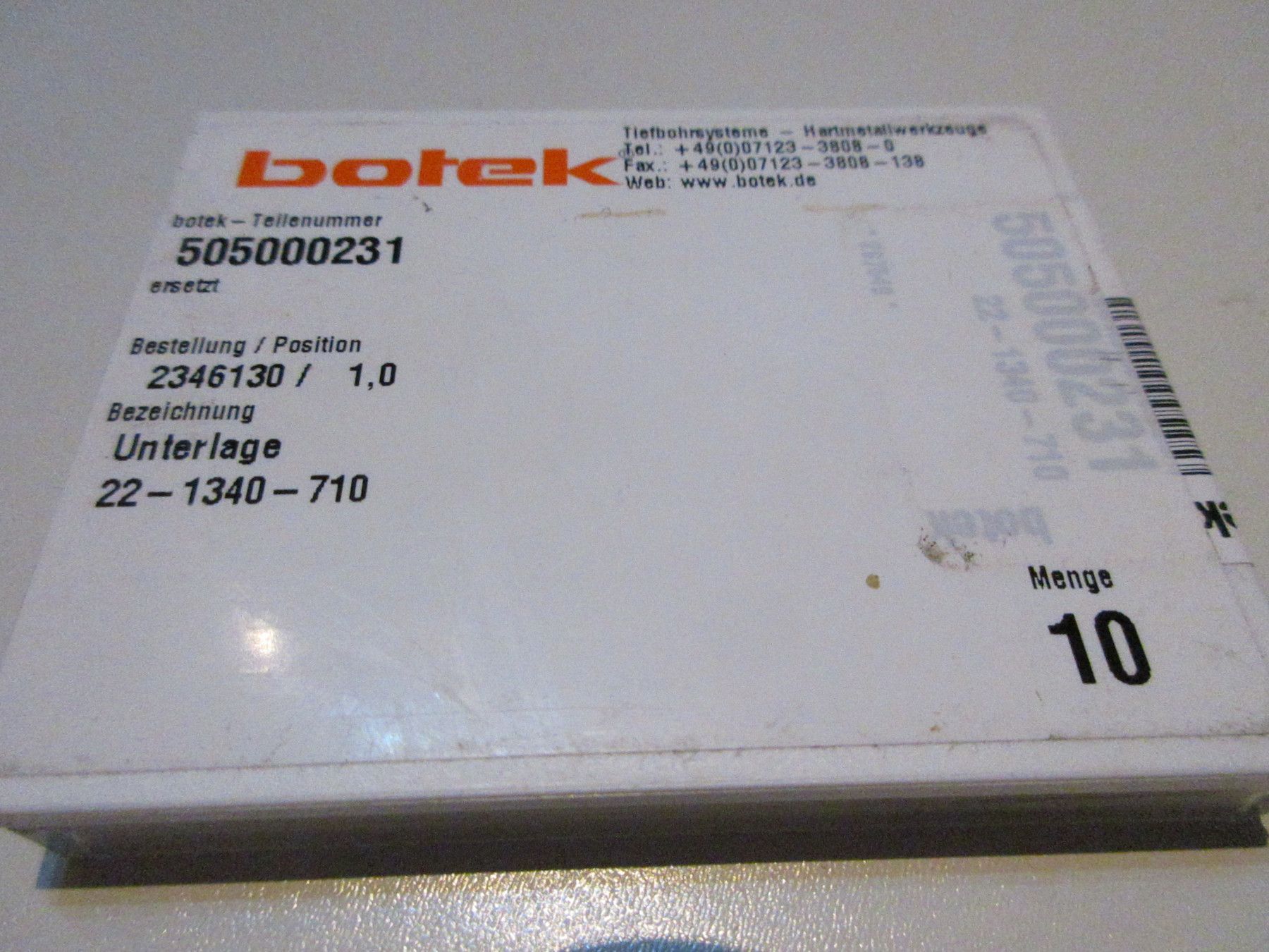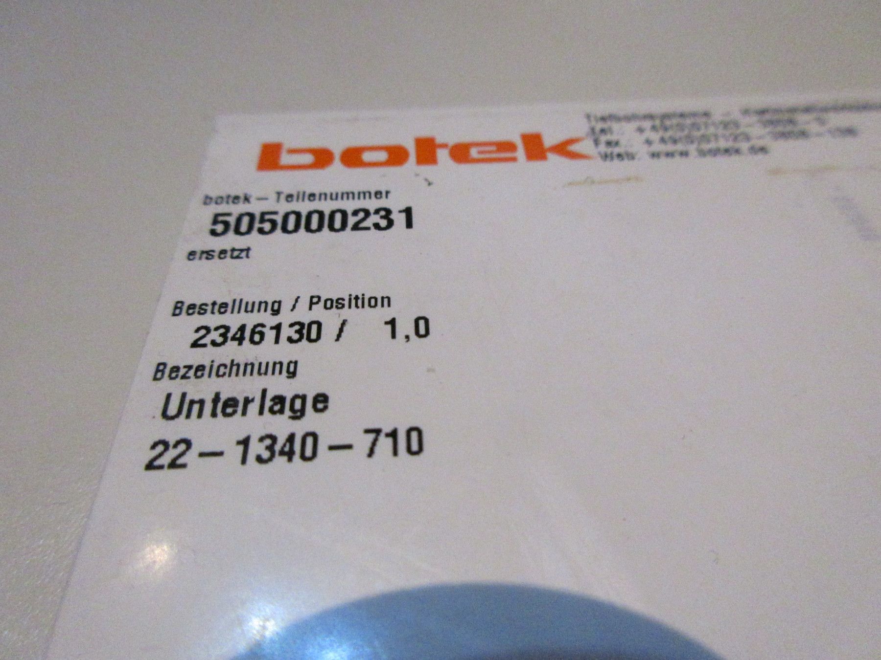10 Botek HM Unterlage 22-1340-710, Teile-Nr: 505000231