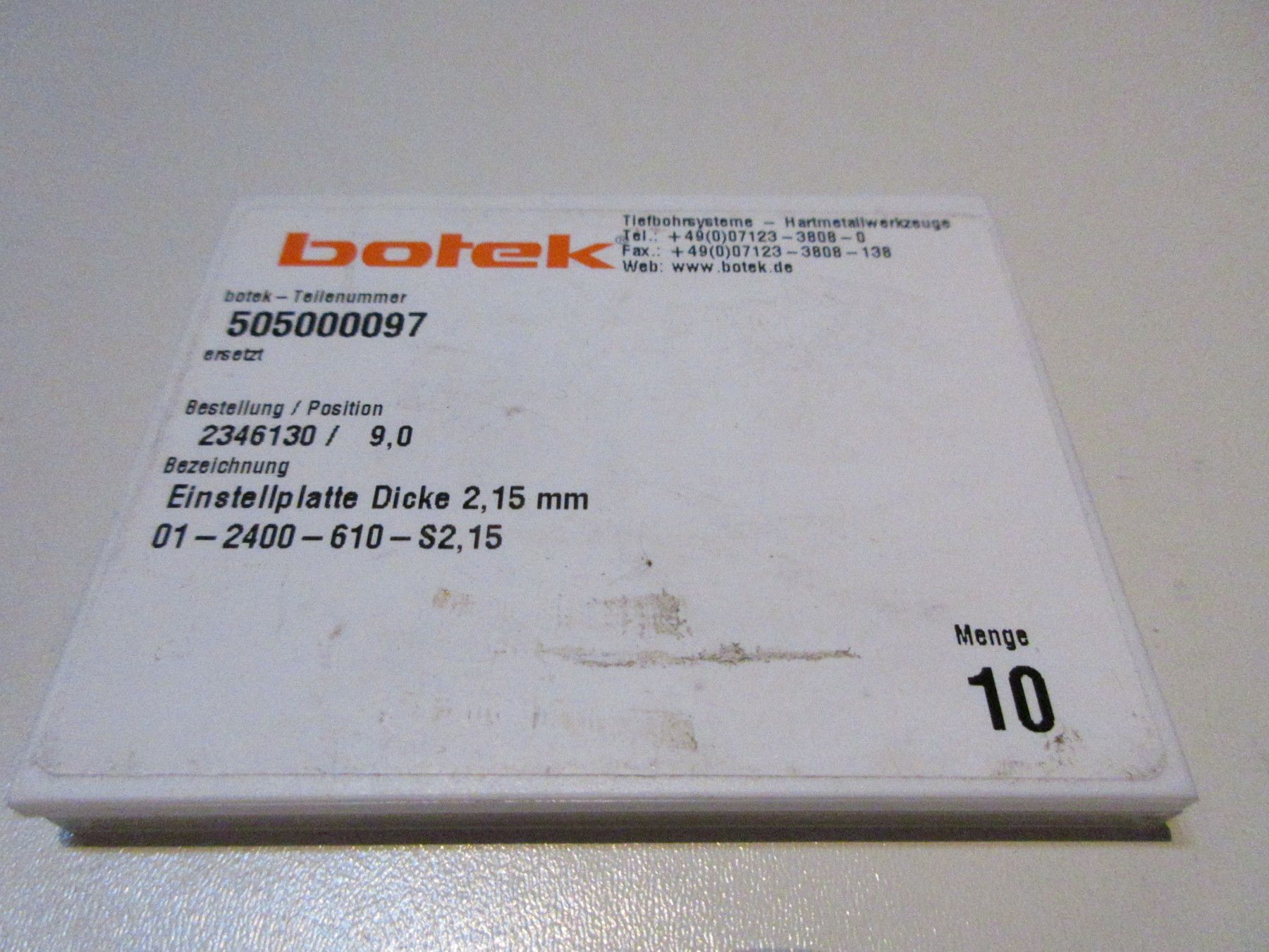 10 Botek VHM Einstellplatte 01-2400-610-S2,15, Teile-Nr: 505000097