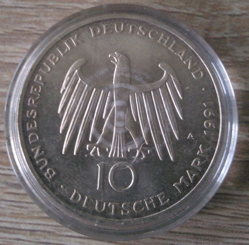 10 DM Brandenburger Tor 1991 vz s. Bild Ag625 Silber 15,5g