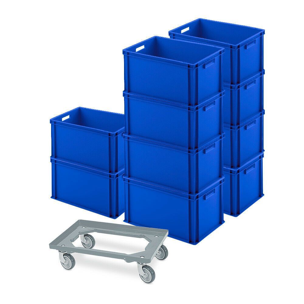 10 Eurobehälter 600x400x320 mm, blau + GRATIS Schwerlast-Transportroller