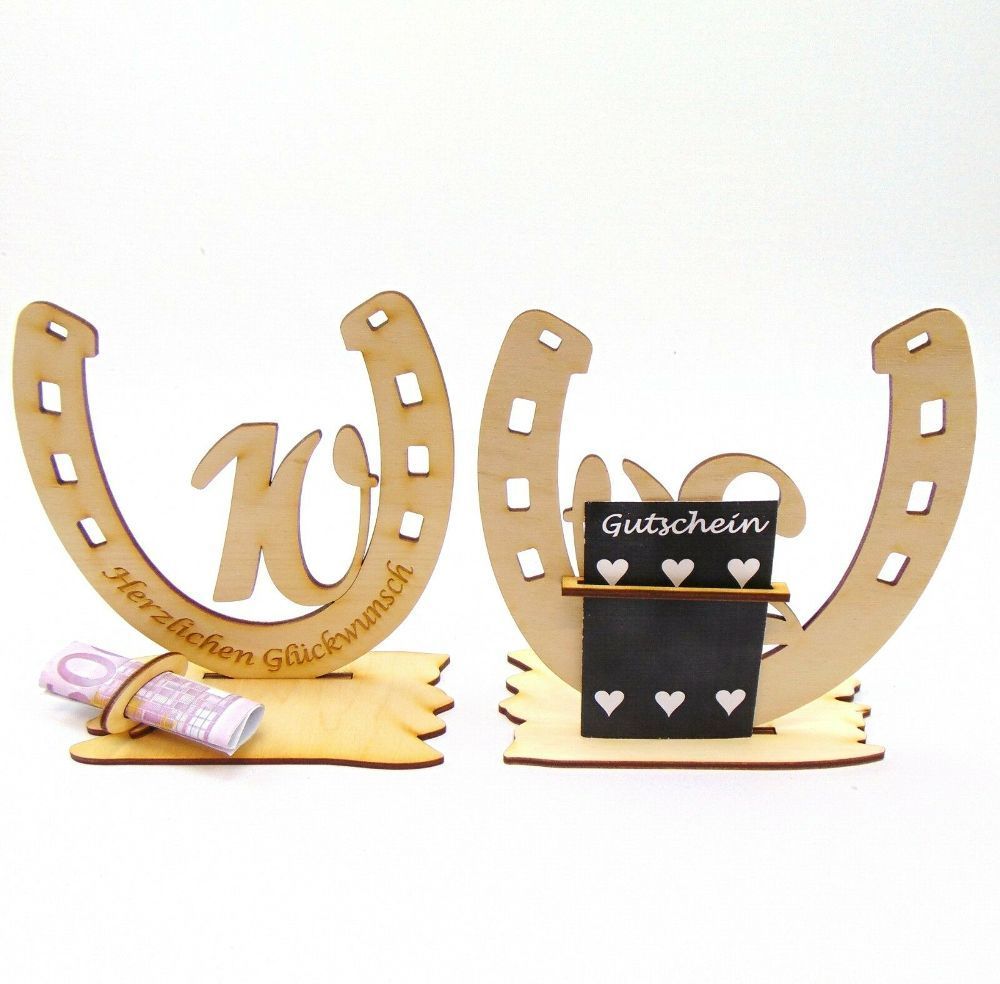 Geldgeschenk - Hufeisen - Glück - Geschenkidee Geldscheinhalter Hufeisen mit Gravur & Geburtstagzahl ... das Hufeisen wird graviert mit Herzlichen Glückwunsch Mit diesem Geldscheinhalter und Gutscheinhalter wahlweise ist Ihr Geld bestens verpackt und ohne viel Aufwand fertig. Wir senden Ihnen al