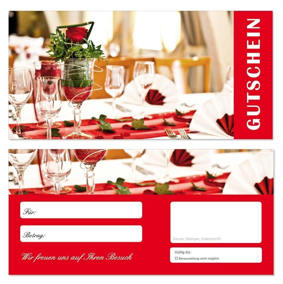 10 Geschenkgutscheine (Gedeck-702) Gutscheine Gastronomie Restaurant Feier