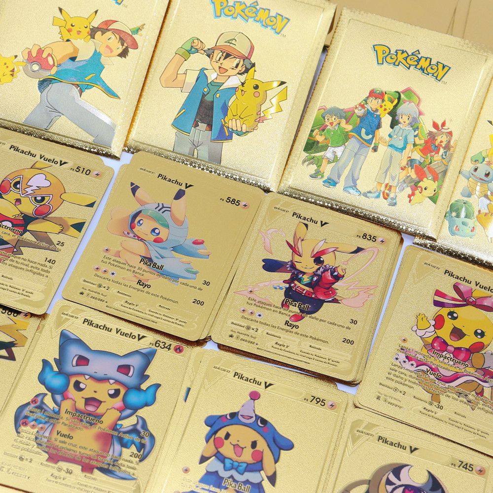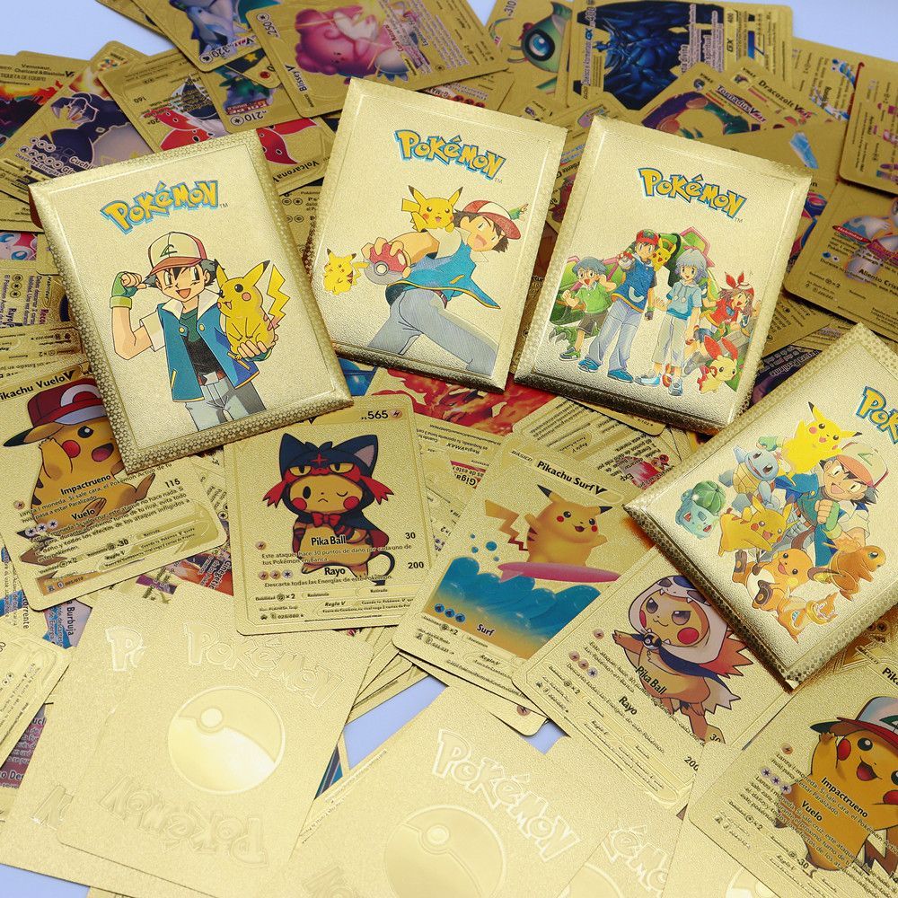 10 Gold Metall Optik Karten Pokemon (1 Blister) Zufallskarten (PM101)