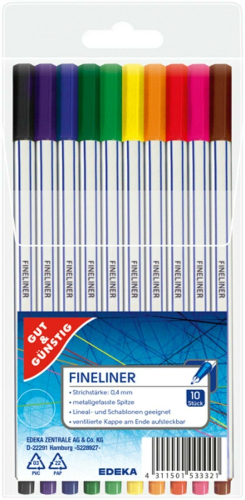 10 Gut & Günstig (Edeka) Fineliner 10 Farben 0,4 mm Sicherheitskappe NEU OVP