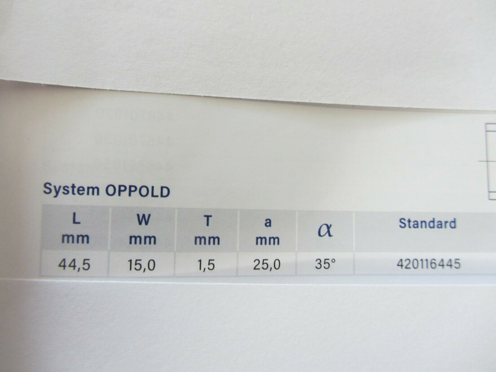 1 Packung (10 Stück) HM-Wendeplatten des Herstellers Barke Made in Germany für System Oppold Maße: 44,5mm lang 15 mm hoch, 1,5 mm stark Lochabstand 25mm 35 Grad Anschliffwinkel Art. Nr. 420116445 mit 2 Schneidkanten Material Standard
