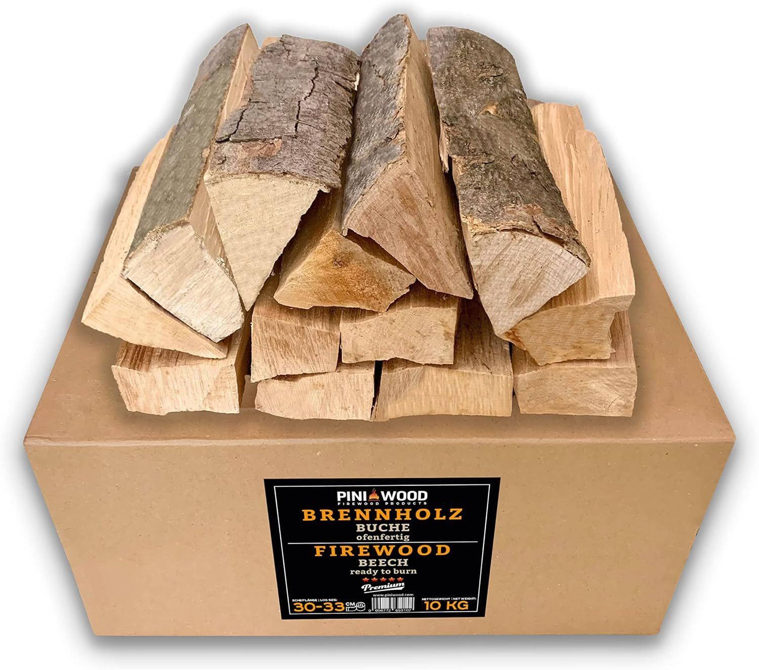 10 Kg PINI Brennholz Buche ca. 30-33 cm ofenfertig für Kamin Grill Feuerschale Ofen