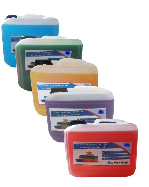 Produkte Über FABA 10 L Flüssigwaschmittel Konzentrat zur Auswahl inkl. Ausgießer Flüssigwaschmittel - Farbe: zur Auswahl - Duft: alle Farben unterschiedlich, frisch angenehm. Unser Flüssigwaschmittel für Weißes und Buntes ist ein Waschmittel für alle Waschtemperaturen von 30 bis 95°C und alle w
