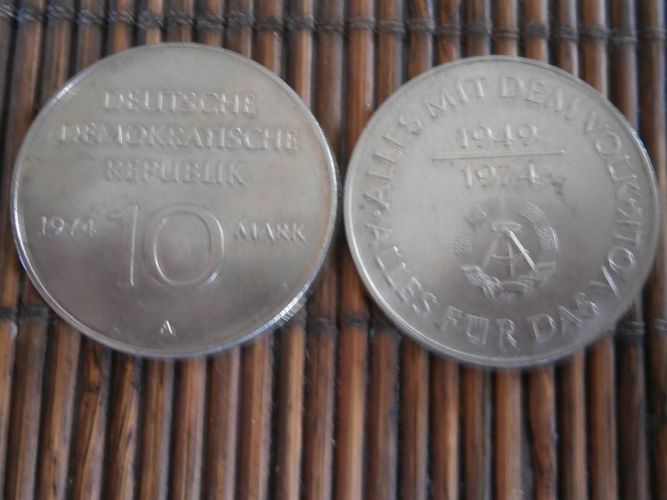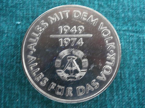 Sammlungsauflösung!!! DDR Gedenkmünze 10 Mark 25 Jahre DDR geprägt 1974 in Berlin. Revers: Staatsbezeichnung, Prägezeichen, Wert, Emmissionsjahr. Avers: Staatswappen der DDR, Umschrift ALLES MIT DEM VOLK * ALLES FÜR DAS VOLK, 1949 -1974 Rand: geriffelt . Die Münze ist was zur Erinnerung oder für Sam