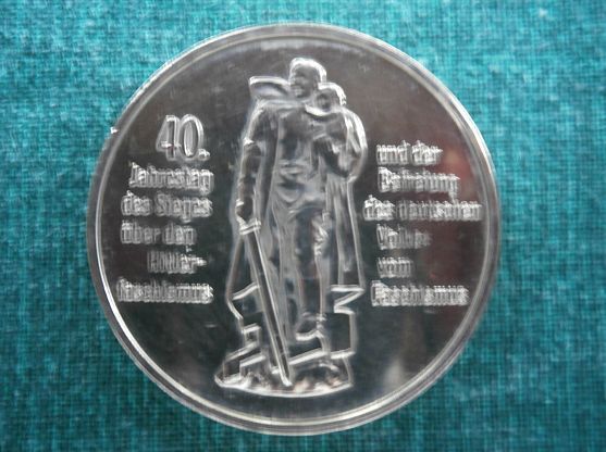 Sammlungsauflösung!!! DDR 10 Mark Gedenkmünze 40 Jahre Niederlage des Deutschen Volkes geprägt 1985 in Berlin. Revers: Staatsbezeichnung und Wappen der DDR, Prägezeichen, Wert, Emmissionsjahr. Avers: Denkmal eines Rotarmisten im Teterower Park, links und rechts daneben 40. Jahrestag des Sieges über