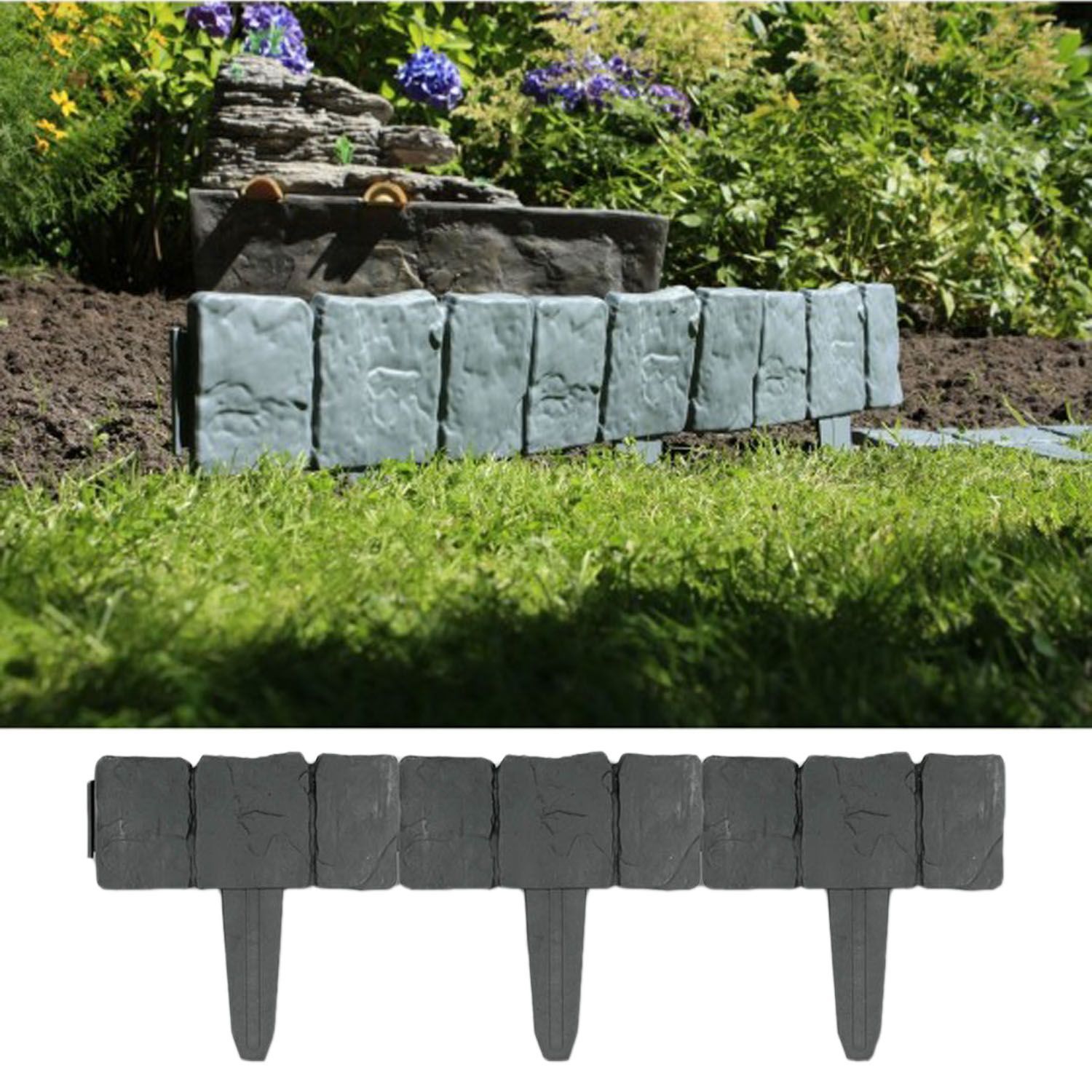 10 Meter Beeteinfassung Steinoptik 40 Stück je 25x23cm Rasenkante Beetumrandung