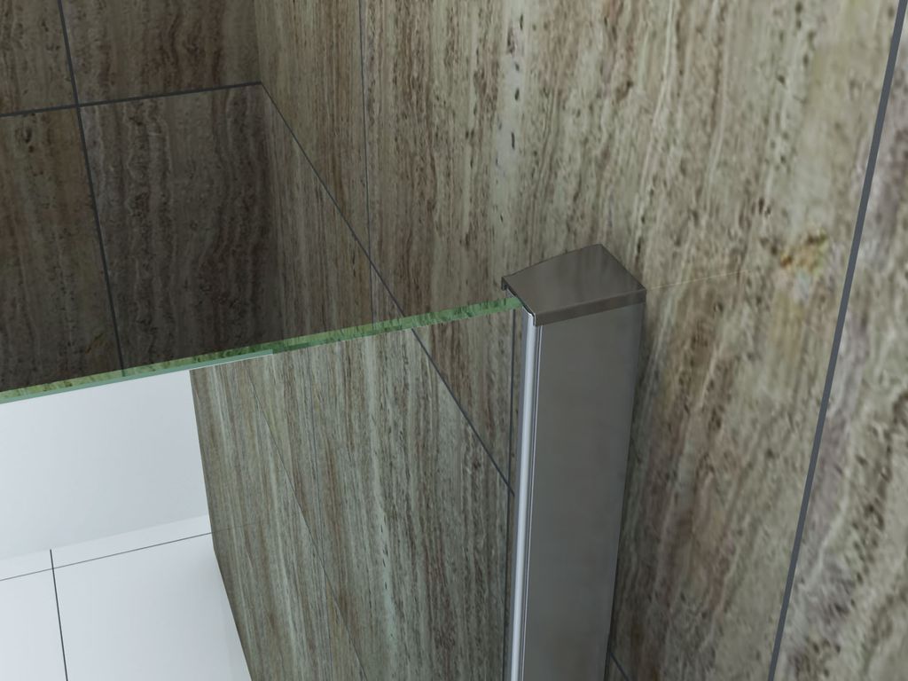 Die Duschwand VACANTE-MR hält das Wasser im Duschbereich, bietet einen großen Einstieg und die Kombination aus Chrom und Spiegelglas sieht edel aus.