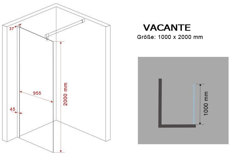 10 mm Spiegelglas Duschtrennwand Vacante-mr 100 x 200 cm
