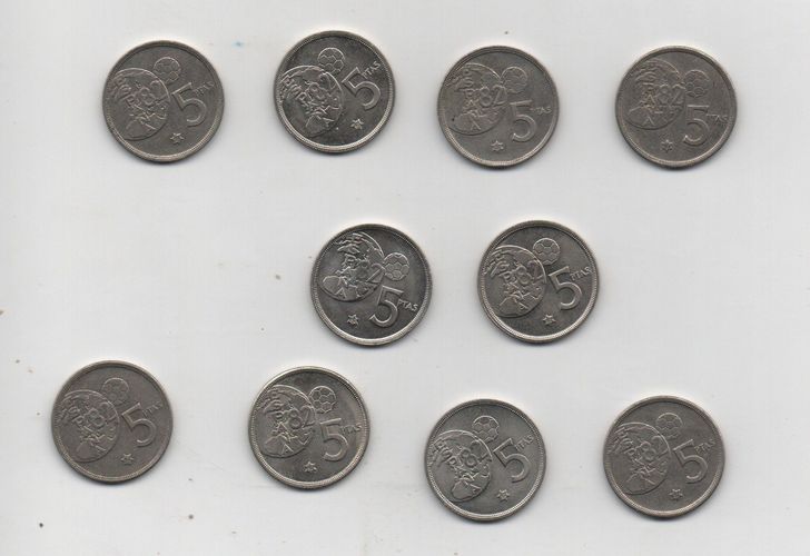 10 Münzen Spanien 5 Peseten WM 1982