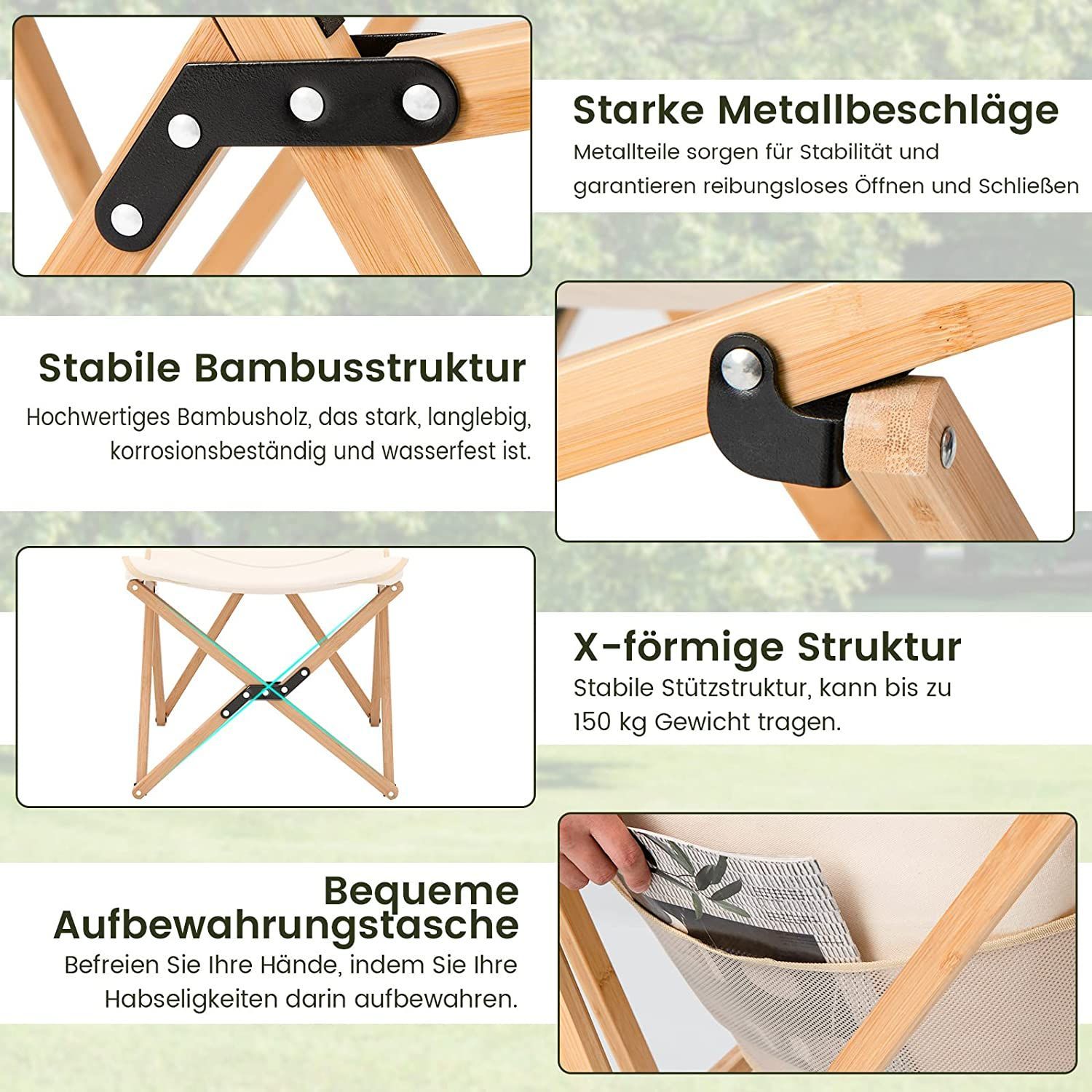 10% off Gutschein 1024 Liegestuhl 2er Set, Klappstuhl aus Bambus