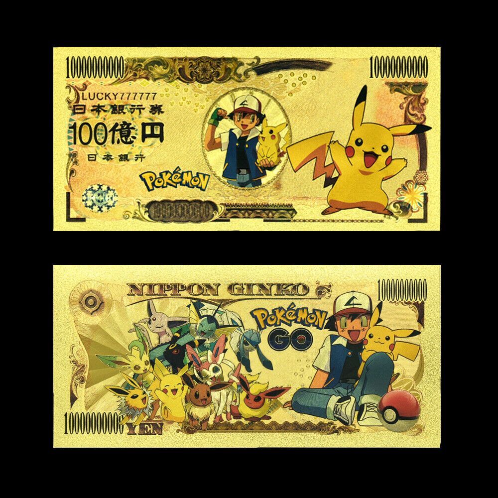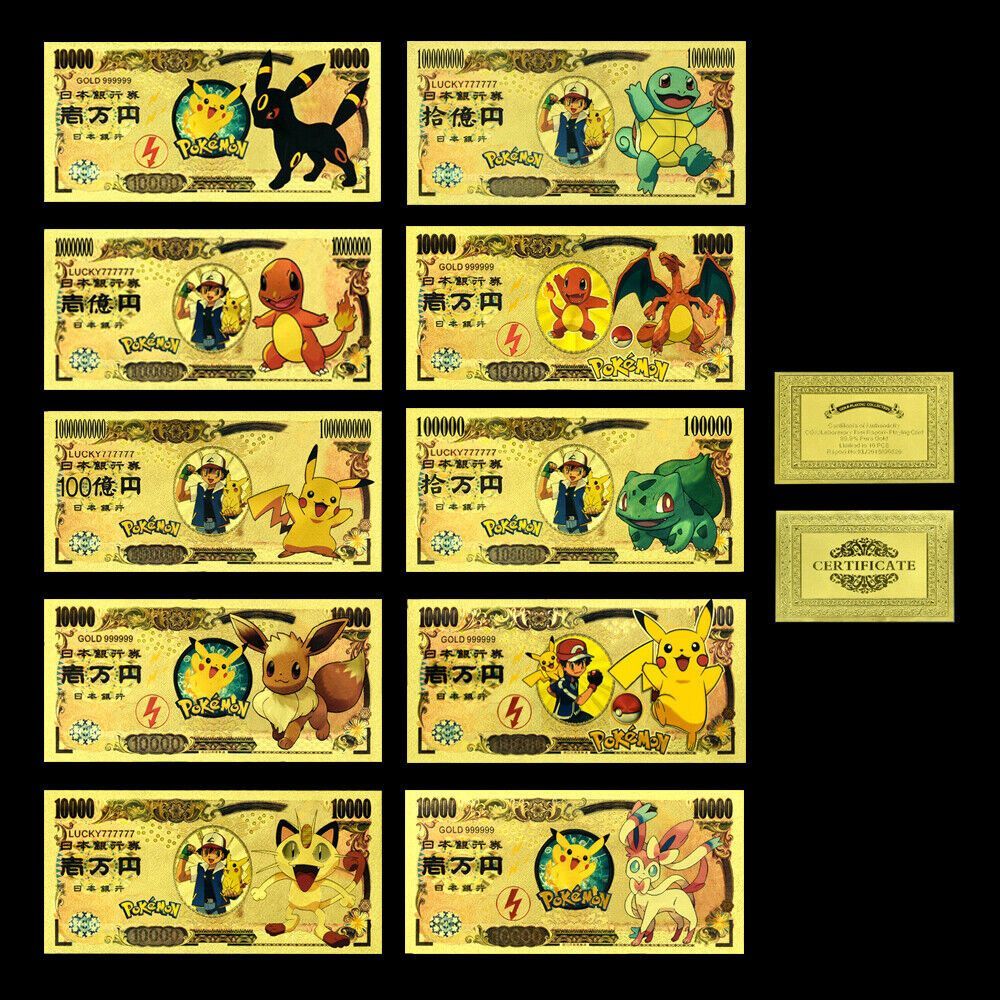 10 Sammelkarten Goldfolie Banknote Pokemon wie abgebildet (CM1789)
