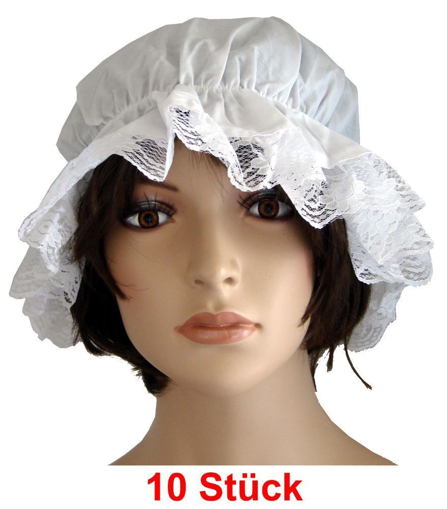 Henbrandt 10 Schlafmützen mit Spitze Nachthaube Nachtmütze Haube Schlafmütze weiss