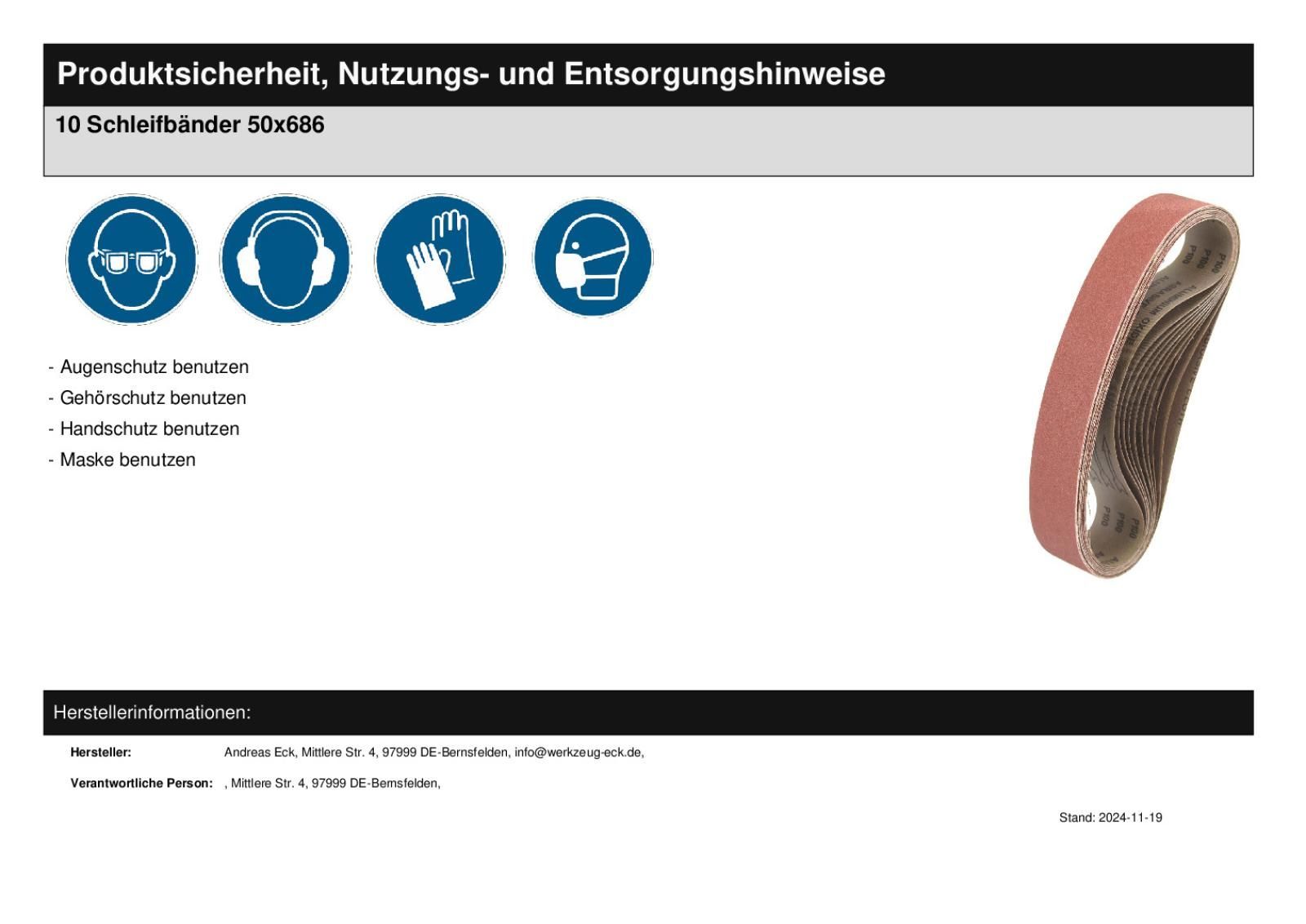 10 Schleifbänder 50x686 mm Schleifband Bandschleifer Schleifpapier