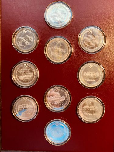 10 Silbermedaillen "Die Ära Adenauer" 24karätiges Gold auf Sterlingsilber (925/1000)