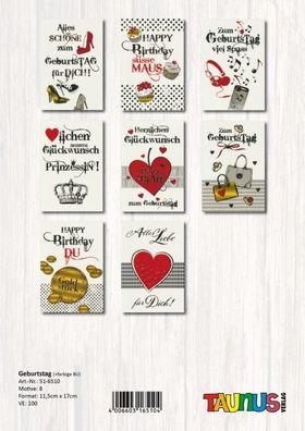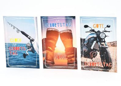Geburtstagskarte - 100 Stück - 3 Motive - 11,5 x 17,5 cm