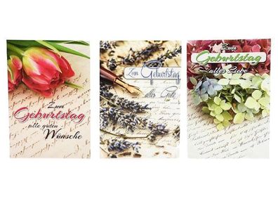 Geburtstagskarte Blumen - 100 Stück - 3 Motive