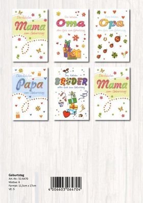Geburtstagskarten Familie - 100 Stück - 6 Motive
