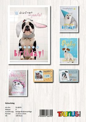Geburtstagskarten Kinder - 100 Stück - 6 Motive
