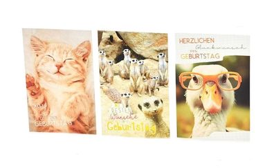 Geburtstagskarte Tierische Geburtstagsgrüße - 100 Stück - 3 Motive