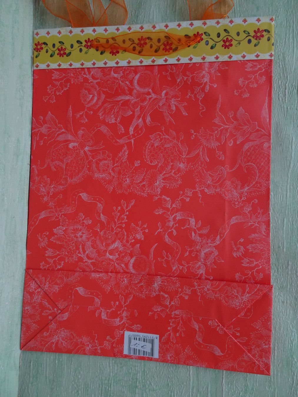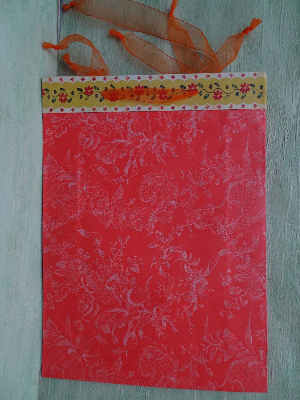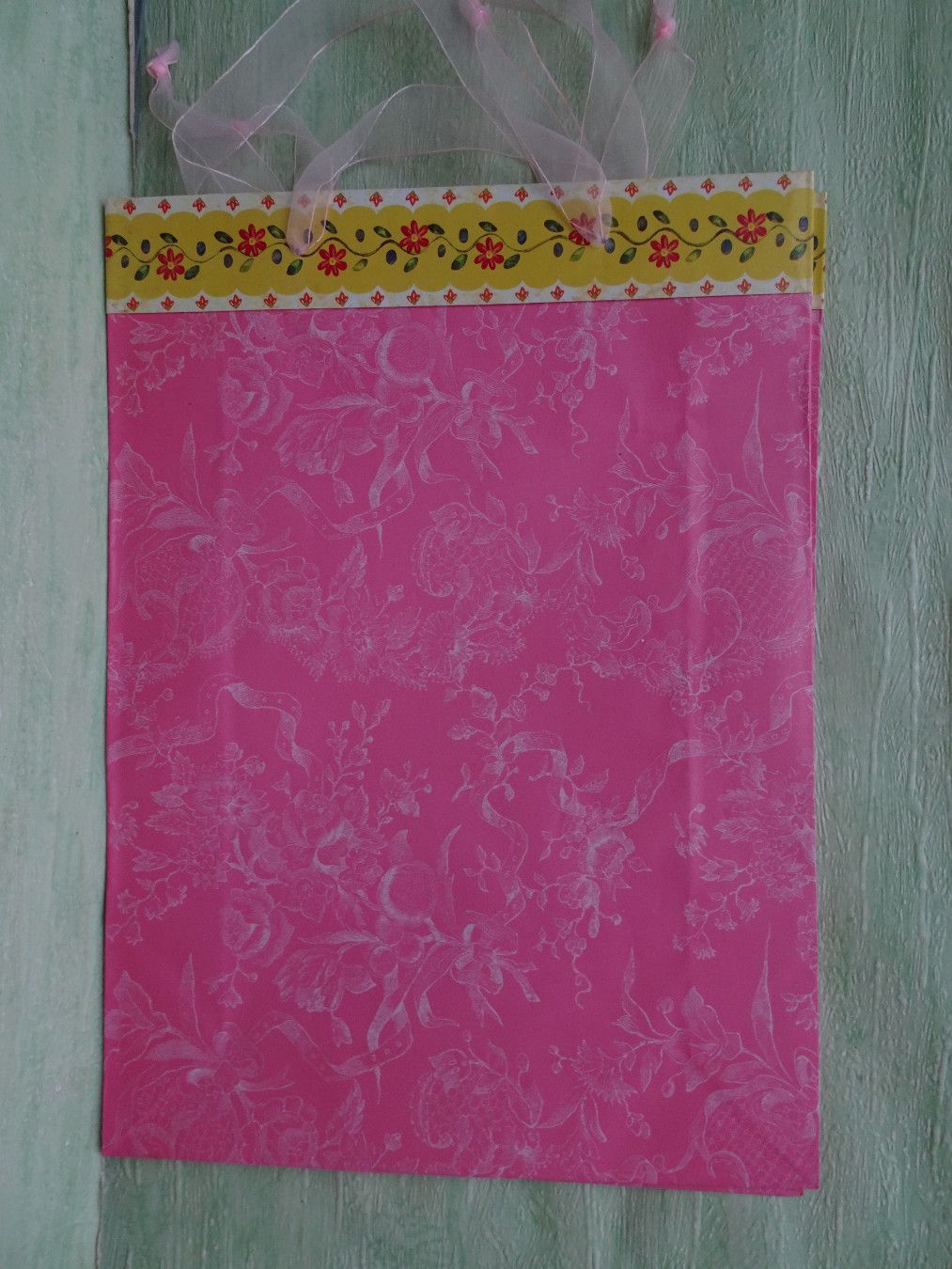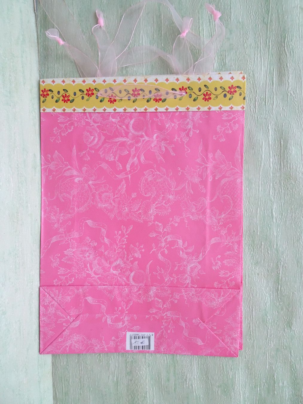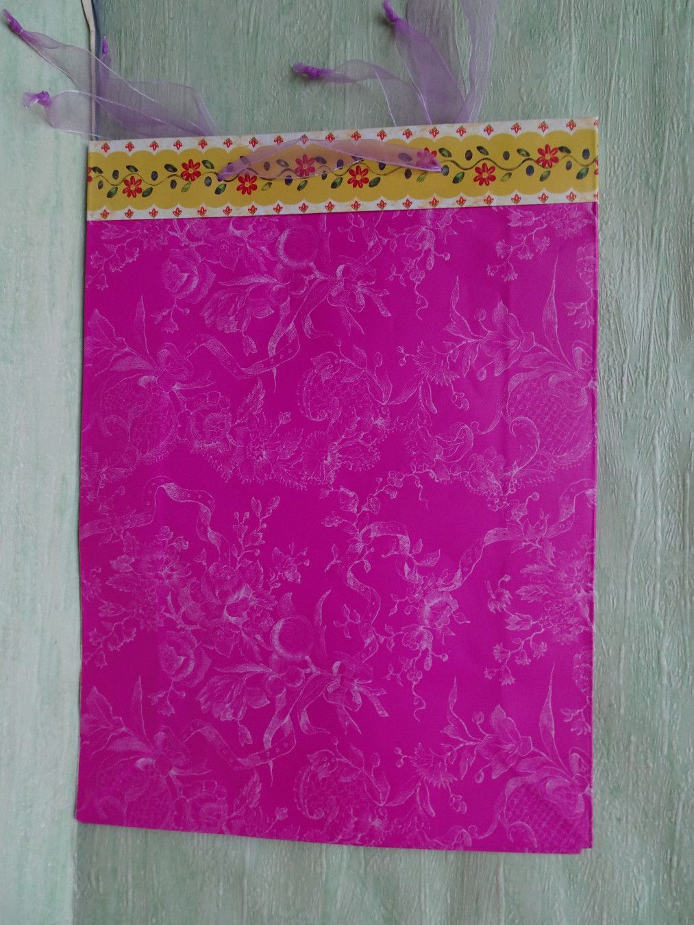 10 stabile Geschenktüten Schleifenband rosa-blau-flieder-orange-gelb Blumenbordüre