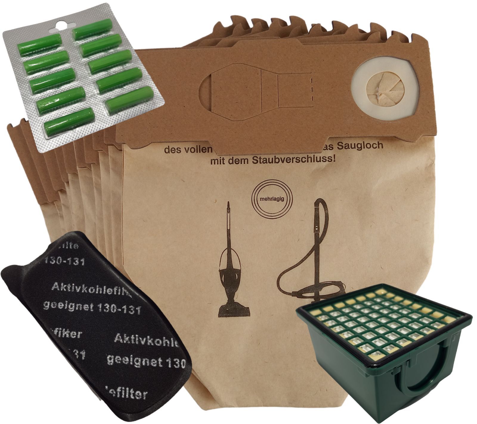 10 Staubsaugerbeutel Papier geeignet Vorwerk Kobold 130 131 + Filter + 10 Duft