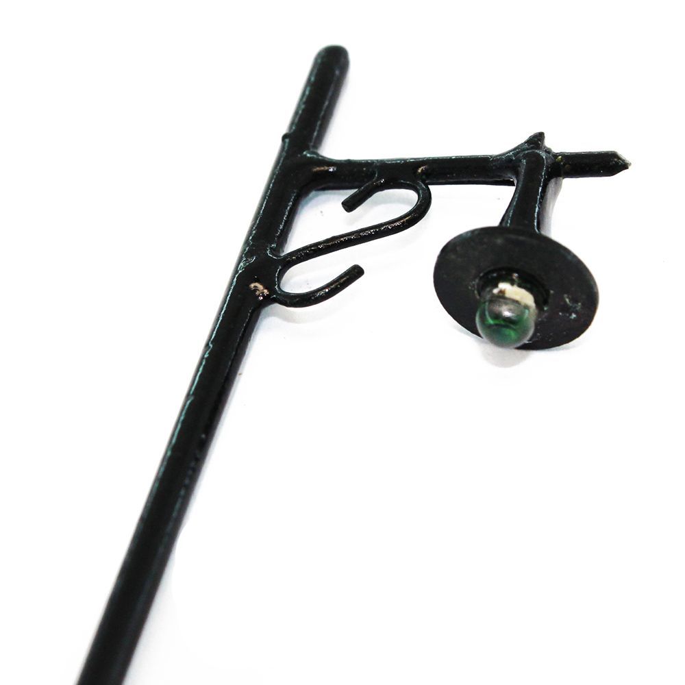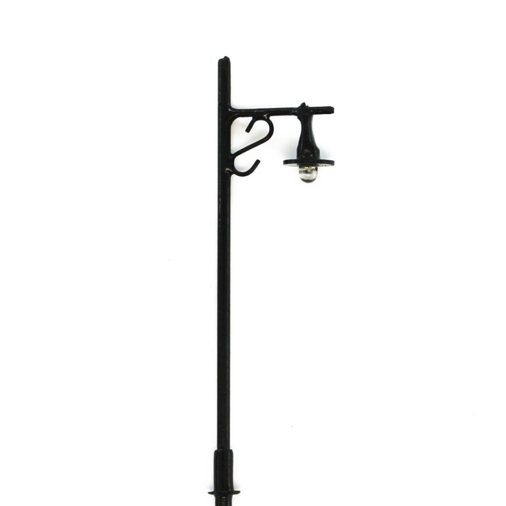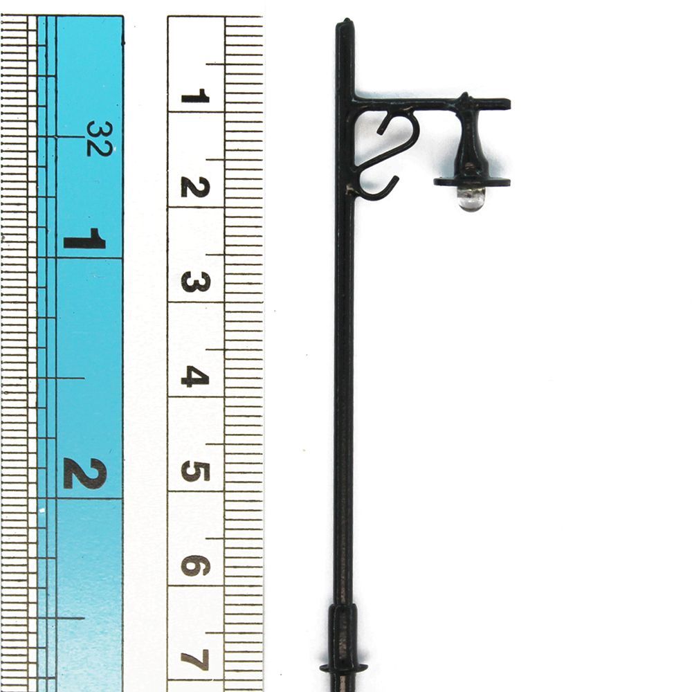 Miniatur Modellbau 1 zu 87 Zubehör zum Ausleuchten Ihrer Mini Straßen und Parkanlagen. Elektronisches 3V DC H0 Eisenbahn Zubehör. Straßenleuchten aus Metall mit einer LED Lampe. 70mm hohe und schwarz lackierte Modellbau Leuchten im Maßstab 1:87.