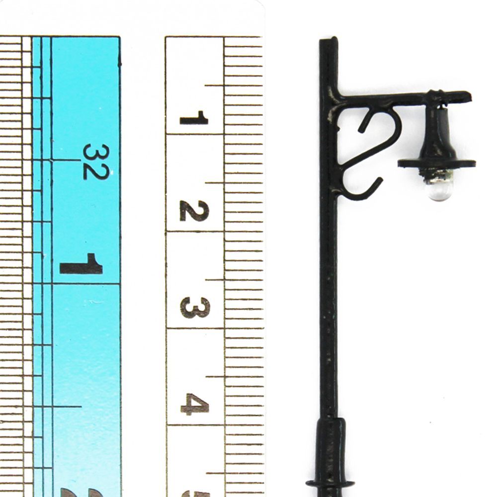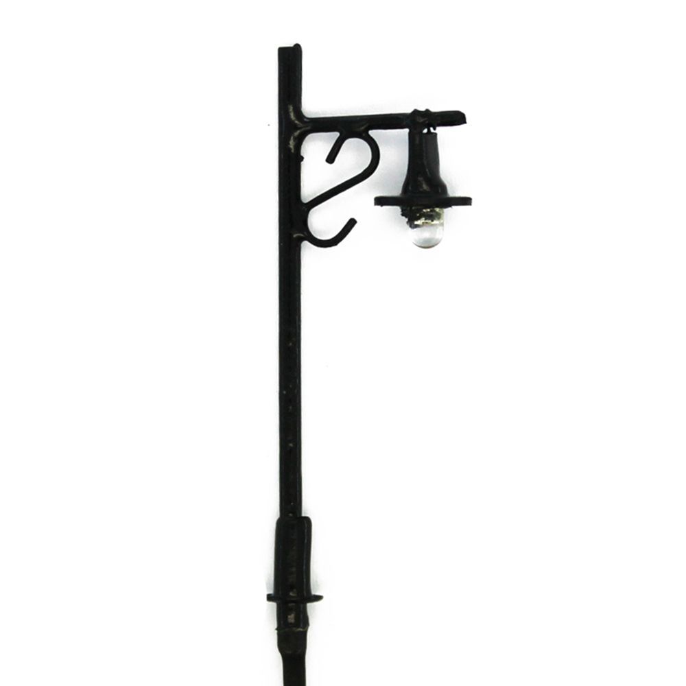 TT Modellbau Led Lampen mit einer Höhe von 47mm. Jede Laterne hat eine LED als Lichtquelle. Lichtmasten und Beleuchtung für TT Modellbahnanlagen im Maßstab 1 zu 120. Led Beleuchtung mit LED und aus Metall für Modellbahn Straßen und Plätze.