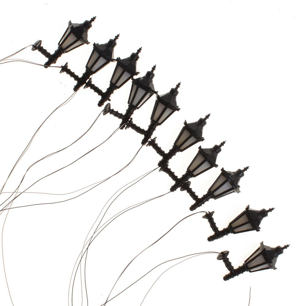 Das Set beinhaltet 10 Stück Modellbau Leuchten im Spur 0 Maßstab.