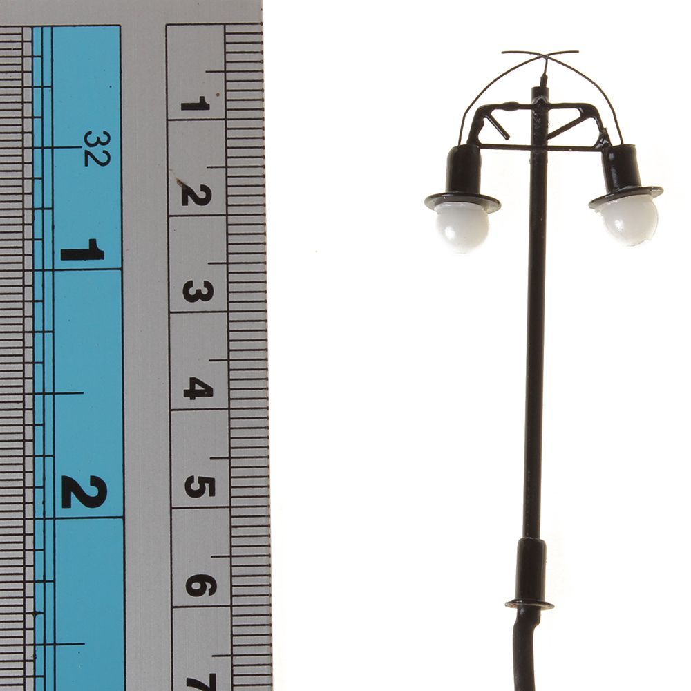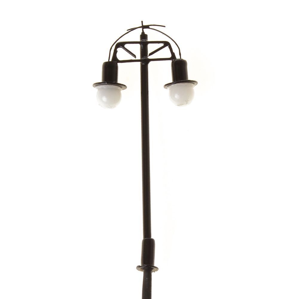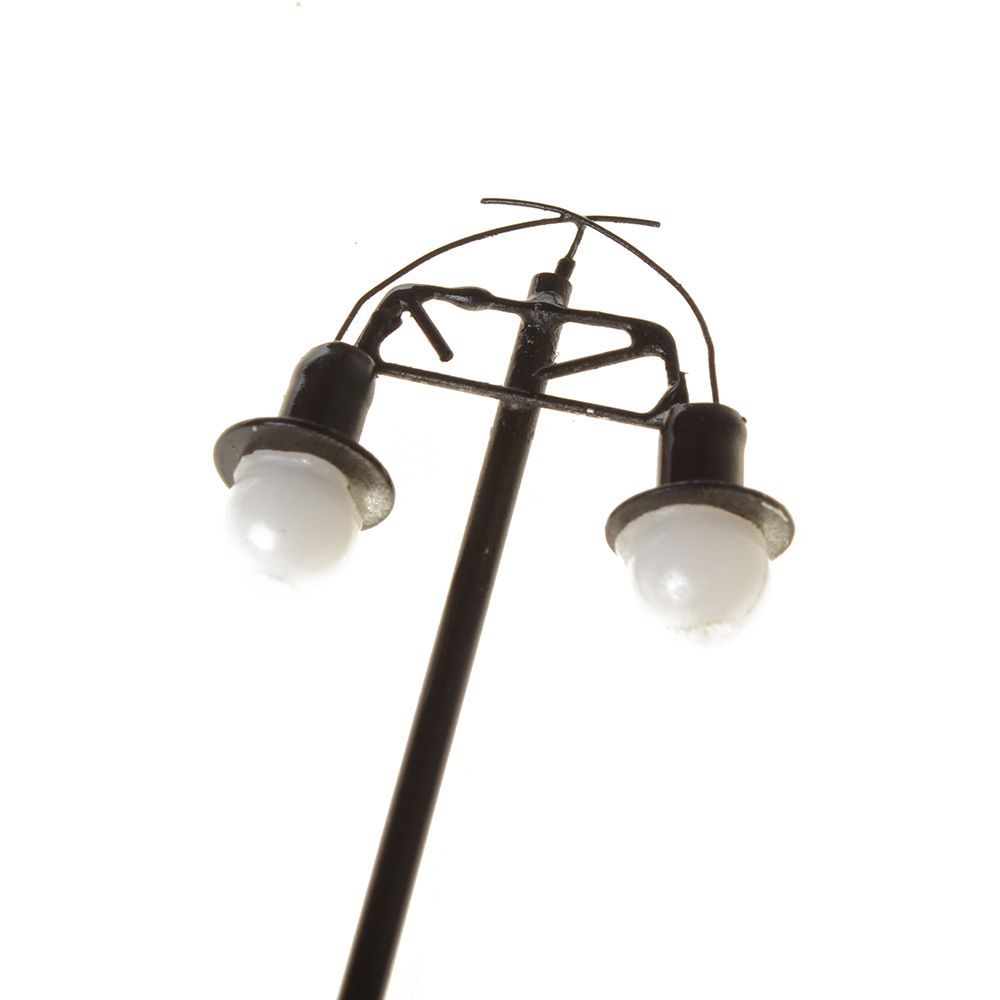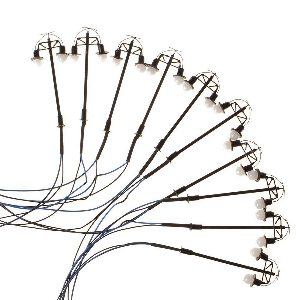 Zehn Stück in einem Set bestehend aus 12 Volt Modelleisenbahn Lampen mit je zwei Kugel-Leuchten.