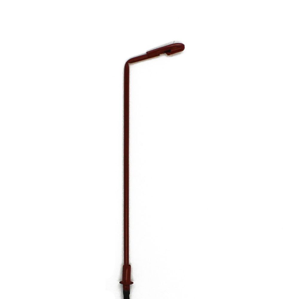 Rot Lackierte Peitschnleuchten mit Led Lampen für Modellbau Landschaften und H0 Miniatur-Anlagen. 3V DC Modellbau Laternen und Straßenbeleuchtungen für Straßen und Plätze im H0 Maßstab 1zu87. 85mm hohe Modellbau HO Leuchten aus Kupfer.