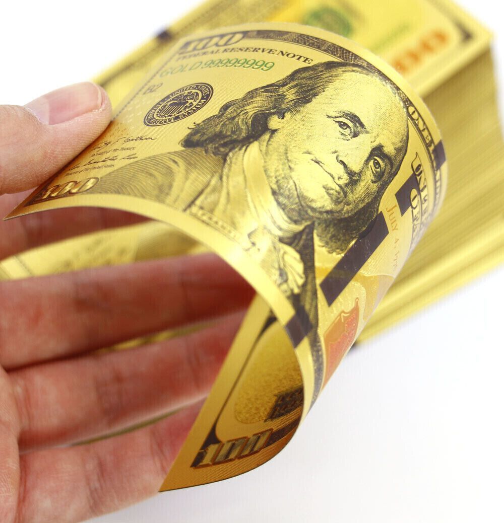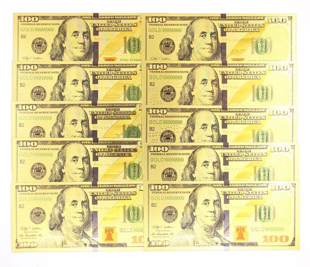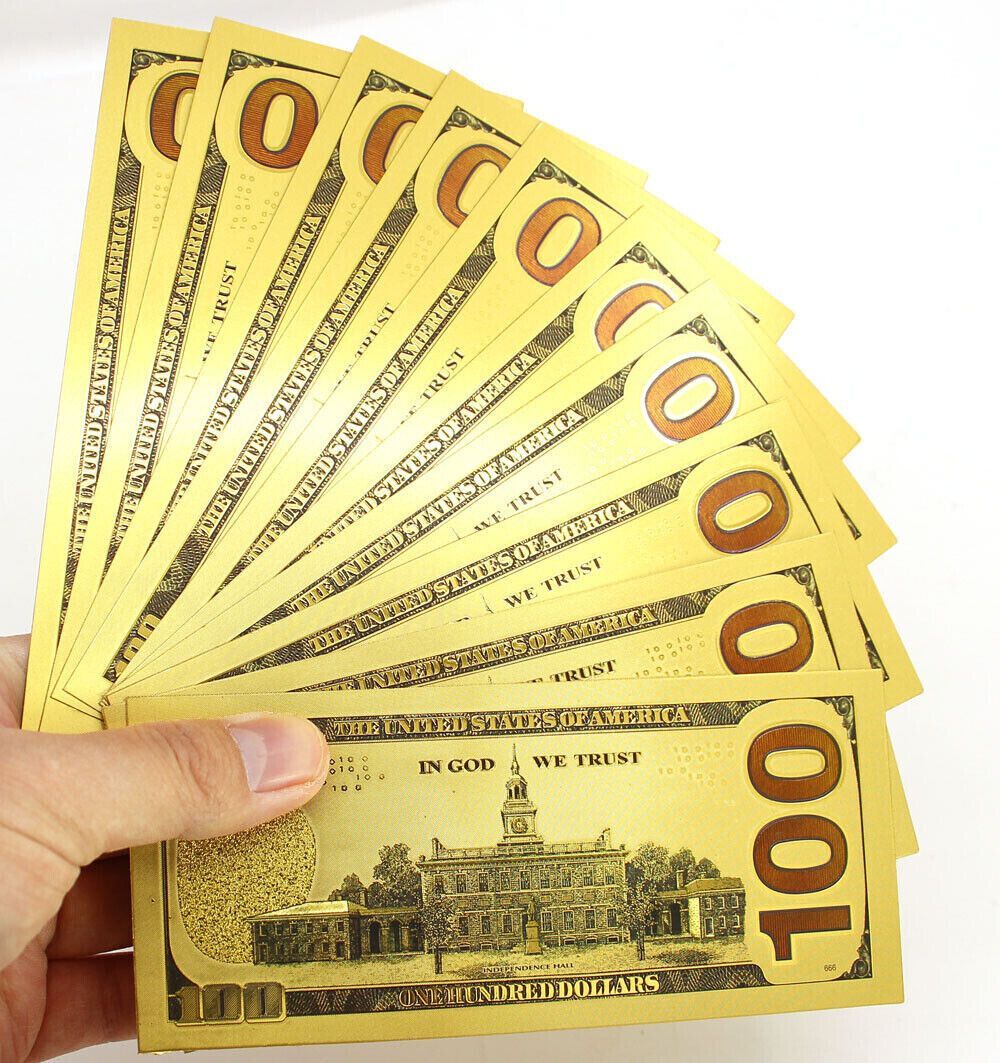 10 Stück 100 USA Dollar Banknoten Gold Plated mit Farbe