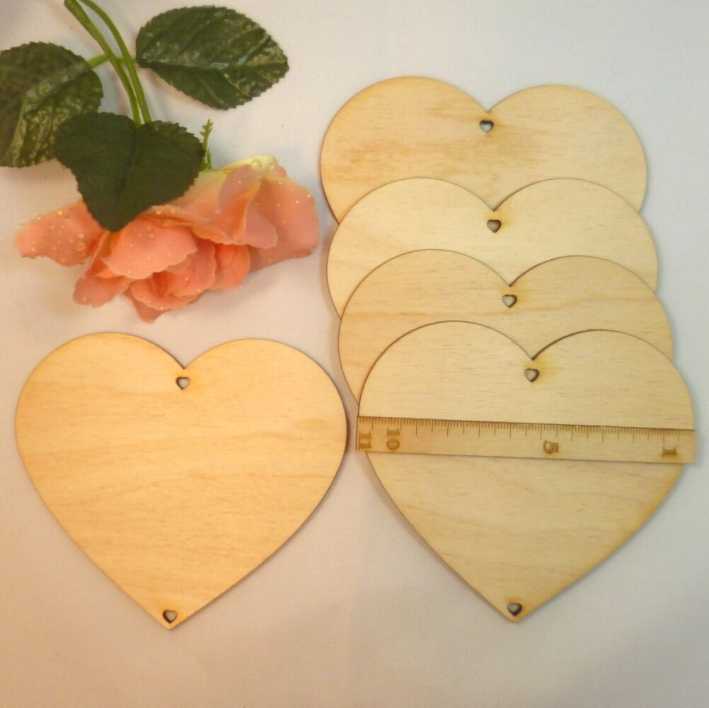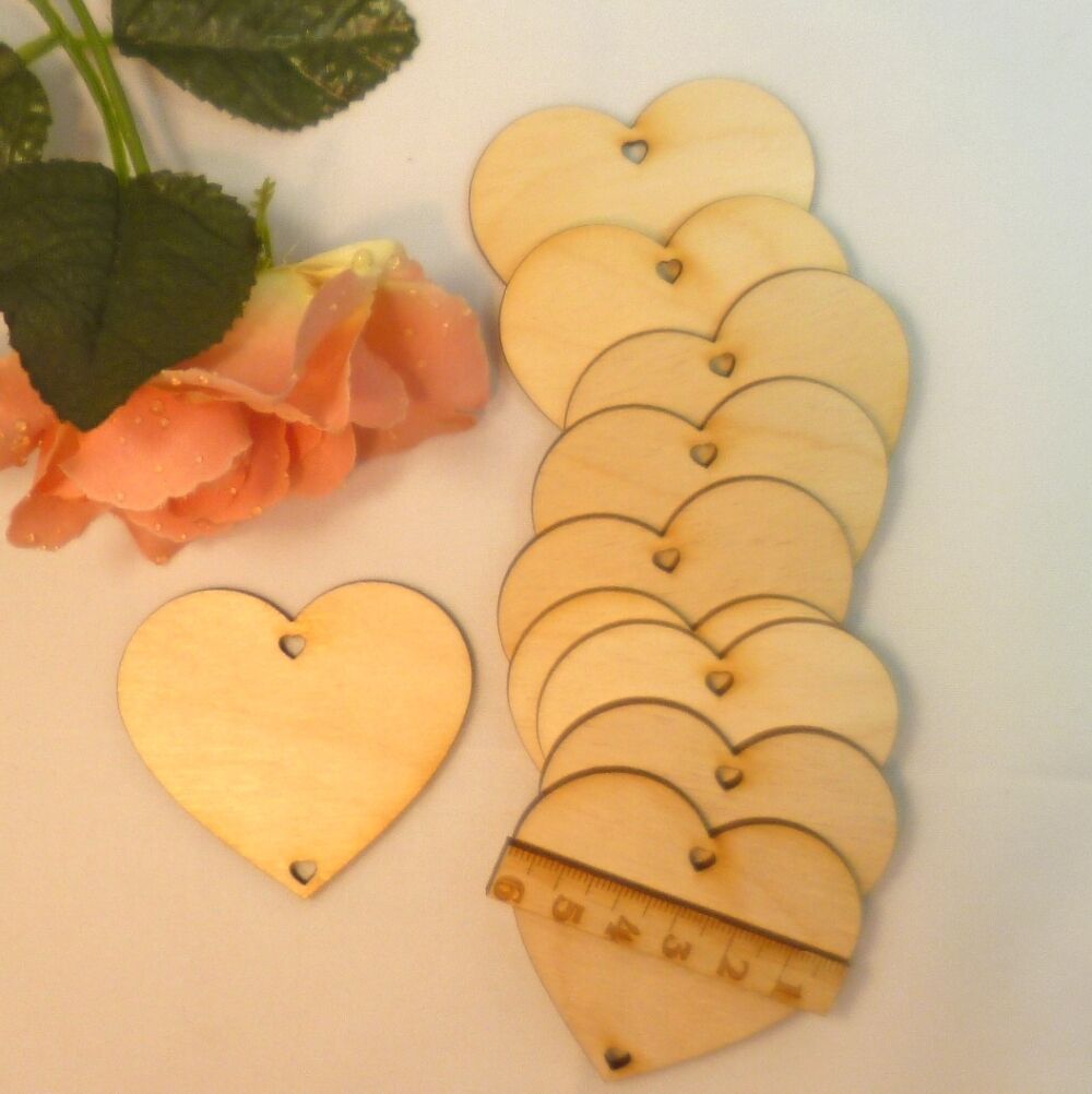 10 Stück Holzherzen Herz mit 2 Löcher Tischdeko Hochzeit 6cm, 8cm, 11cm EHS