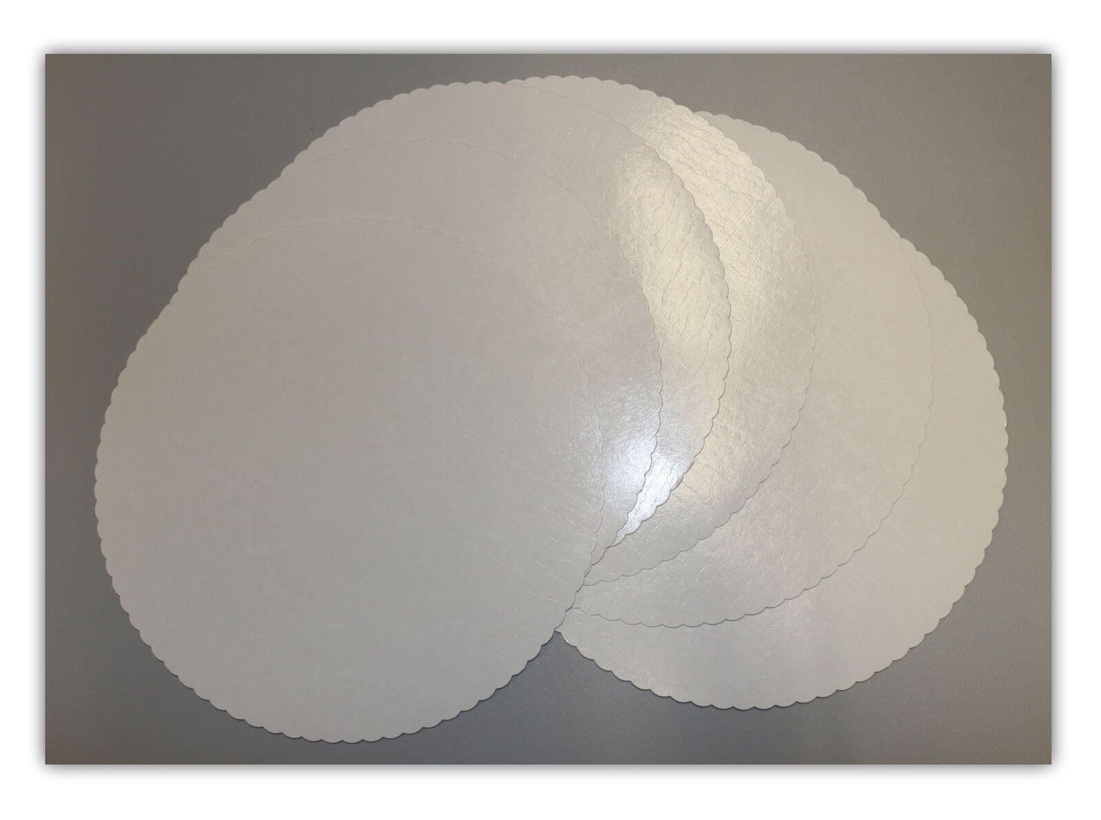 10 Stück Tortenunterlagen, Pappe rund Ø 28cm weiß zackiger Rand beschichtet