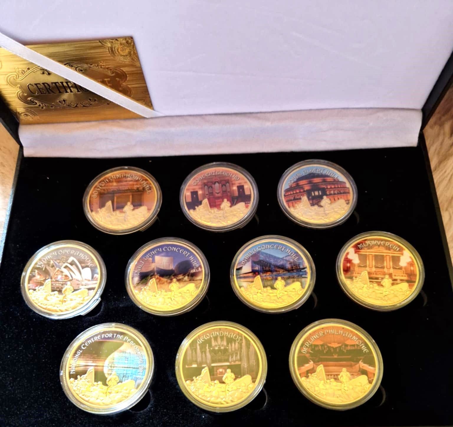 10 Stück Weltberühmte Konzertsaal-Gedenkmedaillen in Schwarzer Geschenkb (MED1007259)