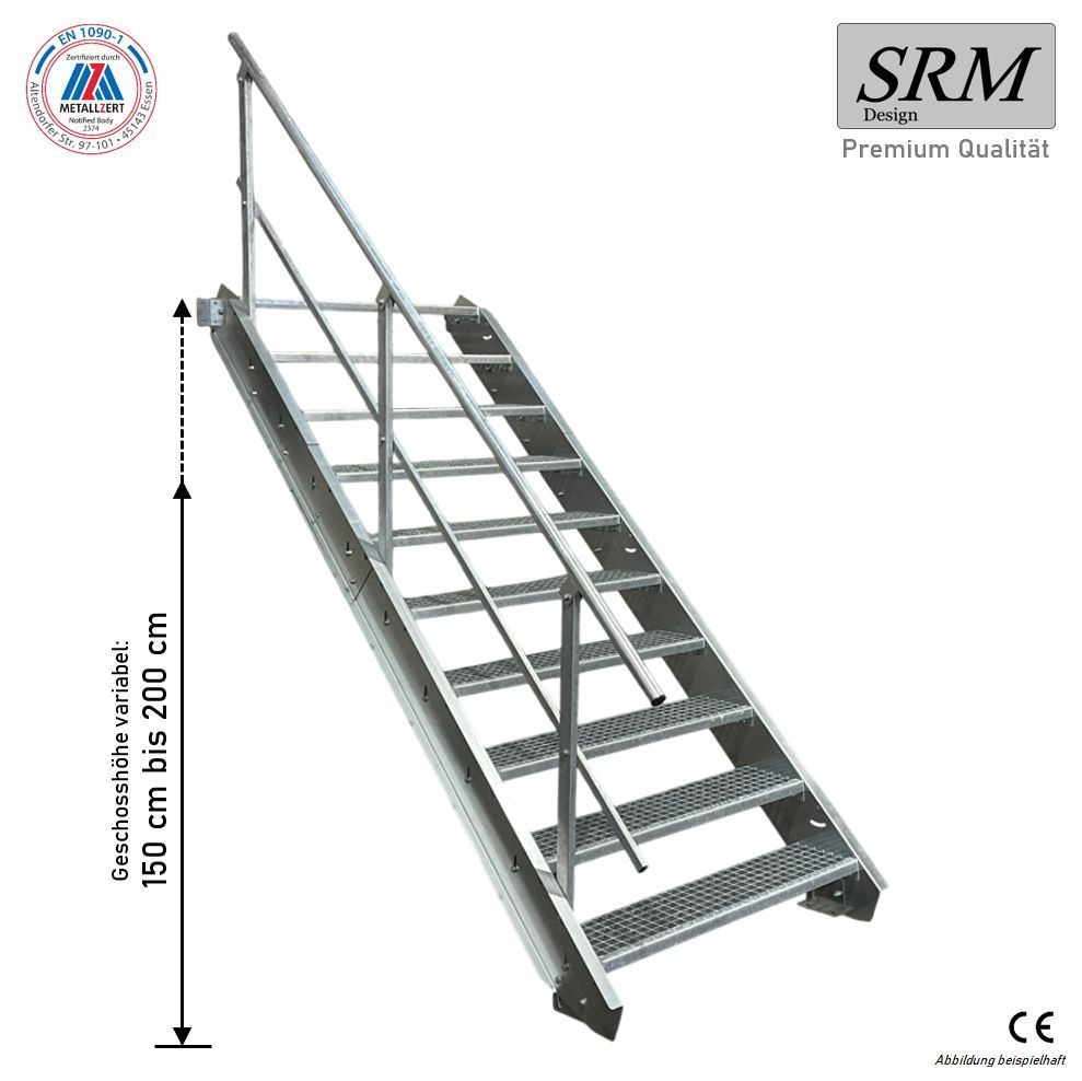 10 Stufen Stahltreppe Breite 60 - 160cm Geschosshöhe 150 - 200cm Geländer einseitig