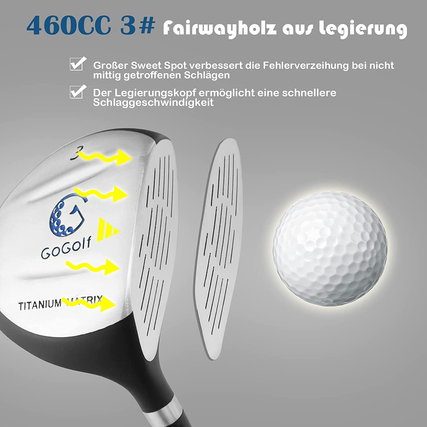 10-teiliges Kinder Golfschläger Set mit Fairway-Holz | Eisen 7, 9 & Putter Golfset