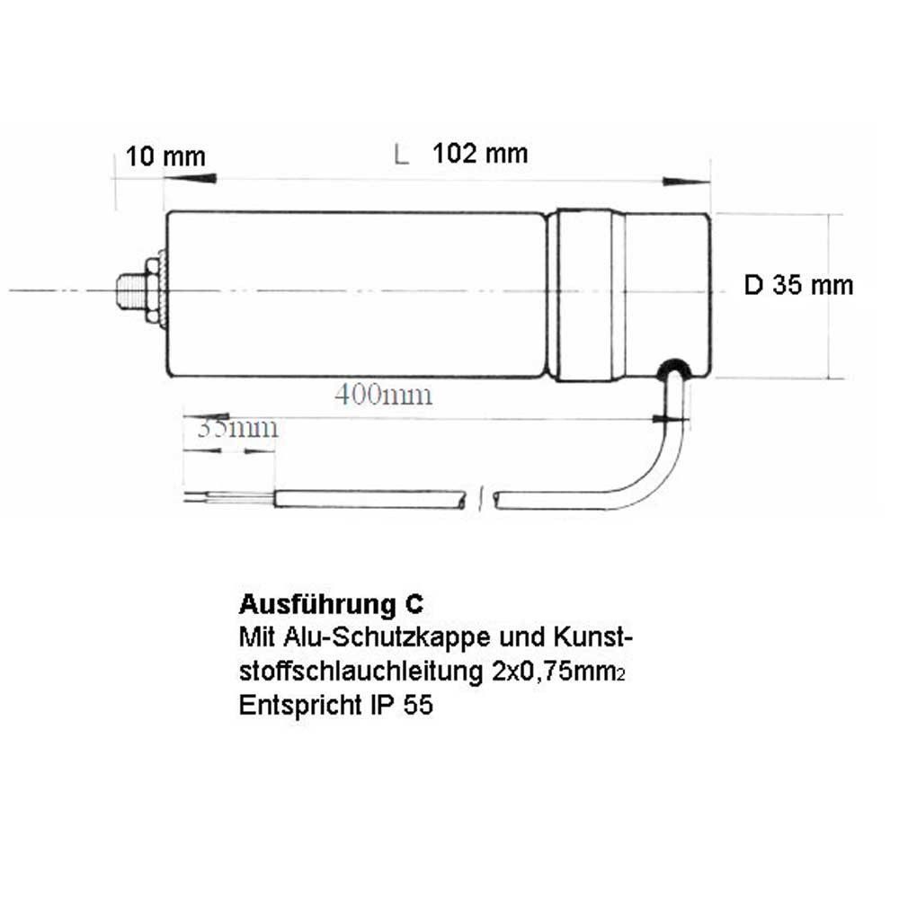 12 uF Motorkondensator Betriebskondensator 12 mF Kondensator Kabelanschluss Alubecher