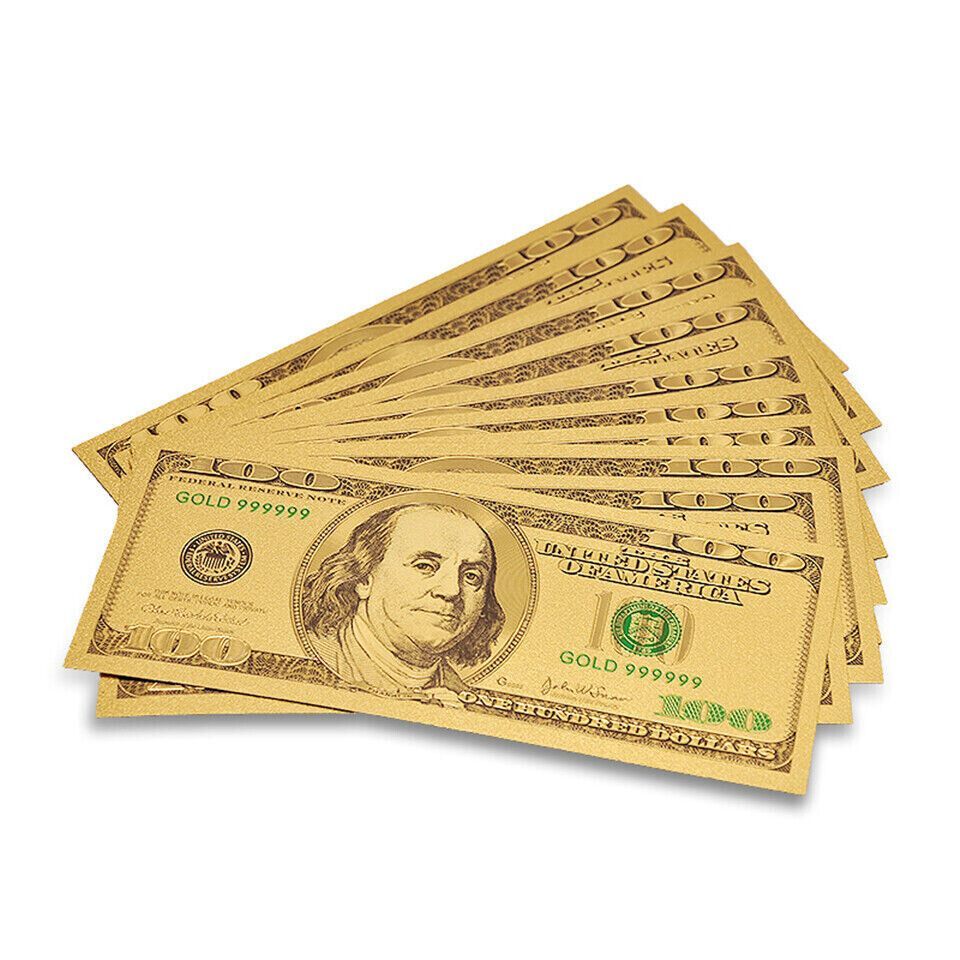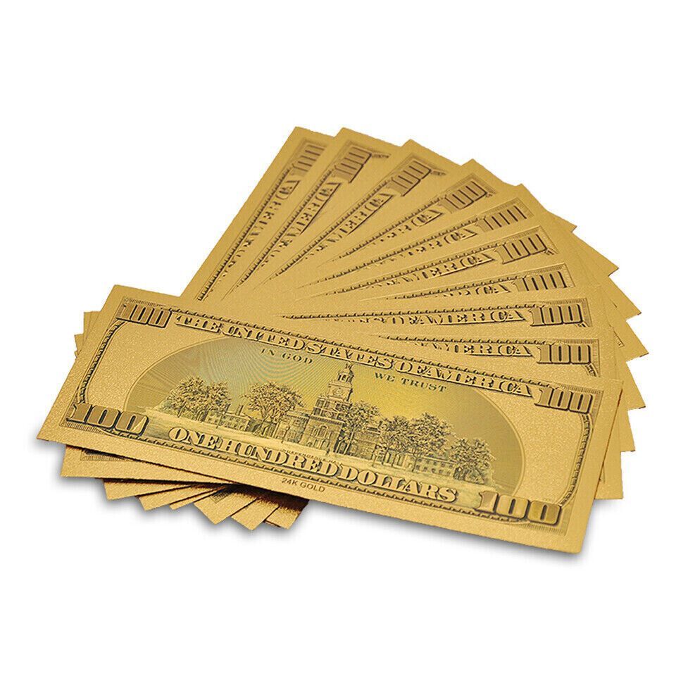 10 x 100 USA Dollar Banknoten Gold Plated mit Farbe