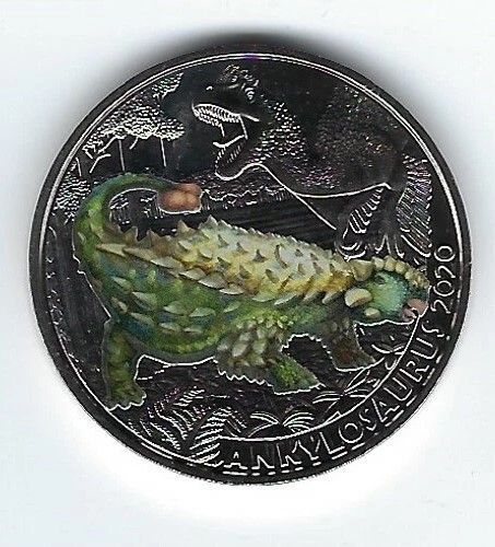 Sammlungsauflösung: 10 x 3 Euro Österreich Dino-Taler Serie: Super-Saurier (leuchtet im Dunkeln) 4. Ausgabe Prägejahr: 2020 Auflage: 65.000 Stück Handgehoben Neu und OVP Die vierte Ausgabe der 12-teiligen 3 Euro Dino-Taler-Serie der Münze Österreich ist dem härtesten Saurier , dem Ankylosaurus, gewi