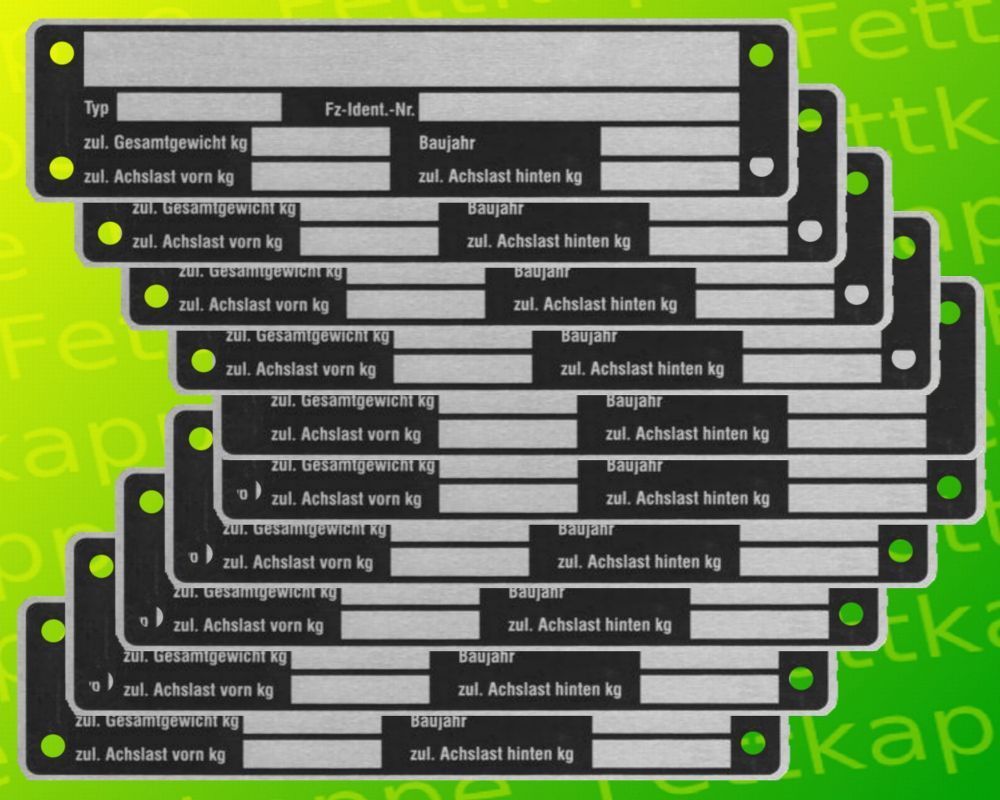 10 x Blanko Typenschild Anhängertypenschild Neutral Anhänger - Typ 1