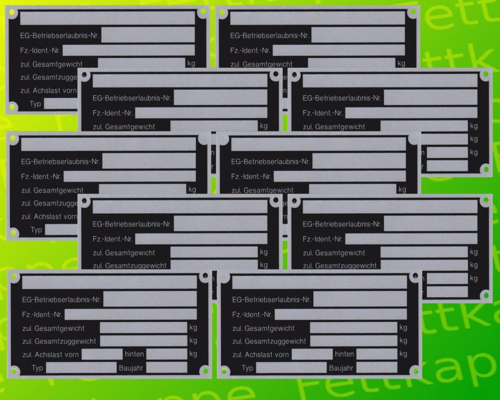 10 x Blanko Typenschild Anhängertypenschild Neutral Anhänger - Typ 3
