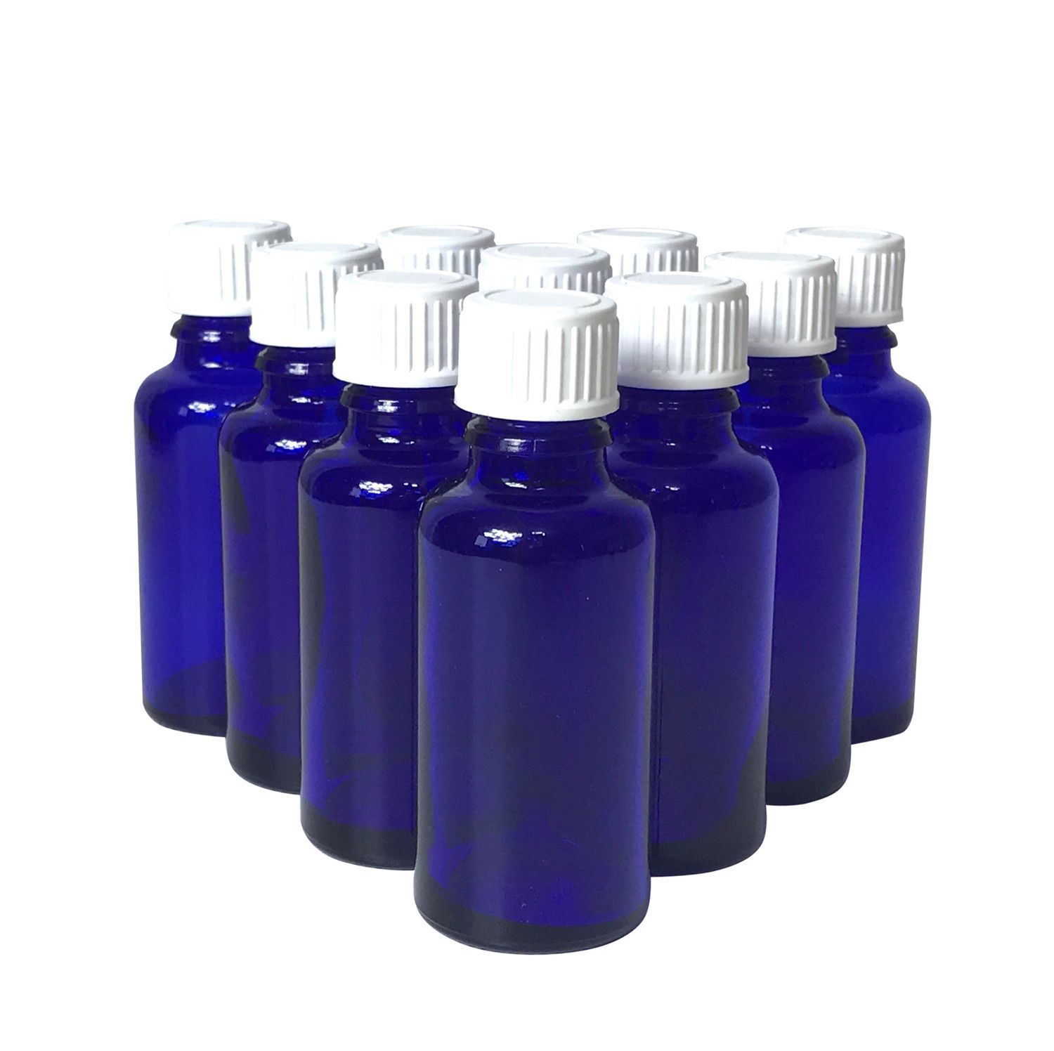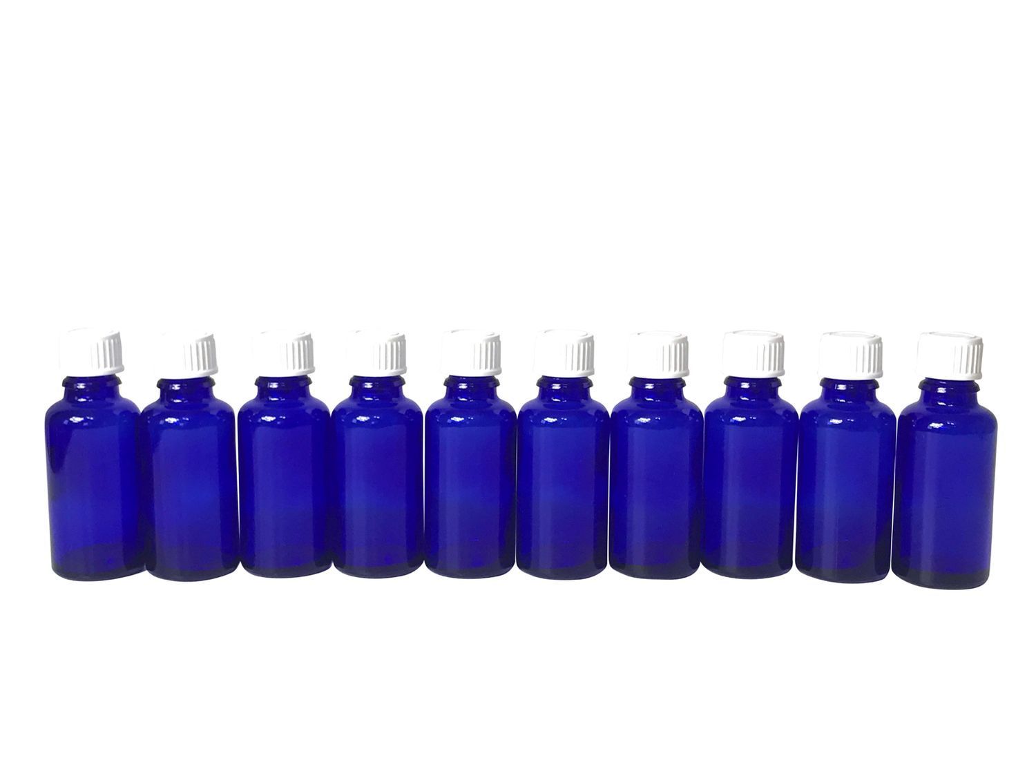 10 x Blauglas Flasche je 30 ml mit DIN18 Gewinde & Deckel