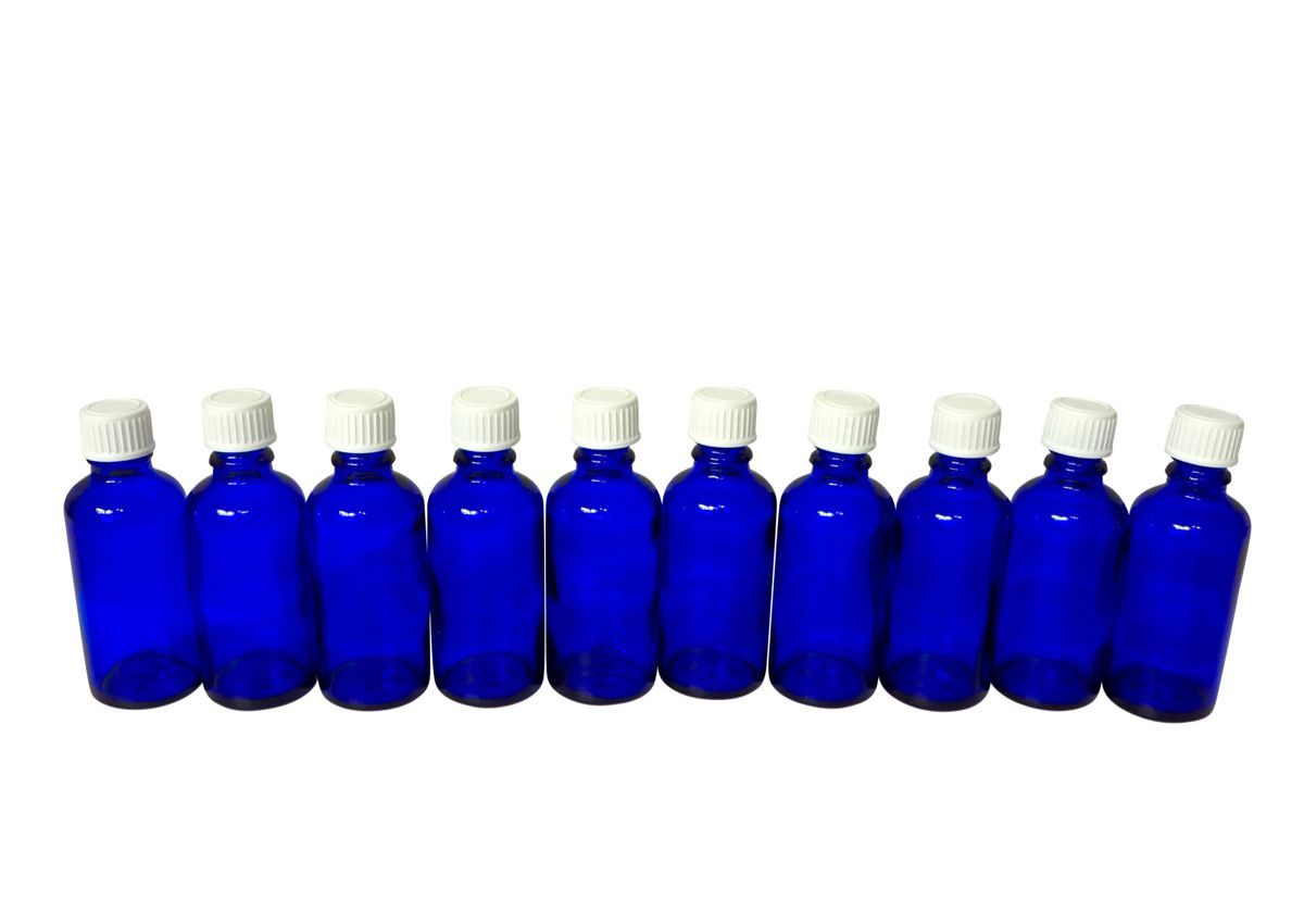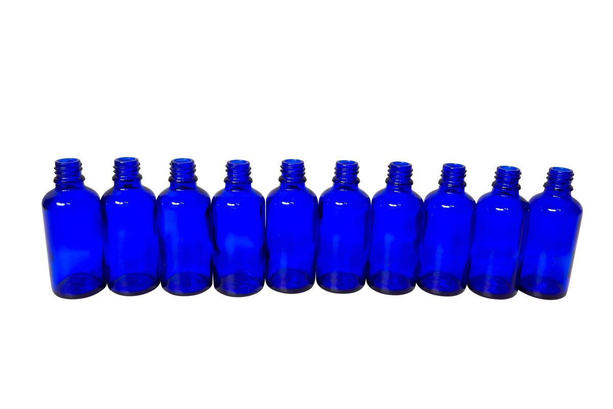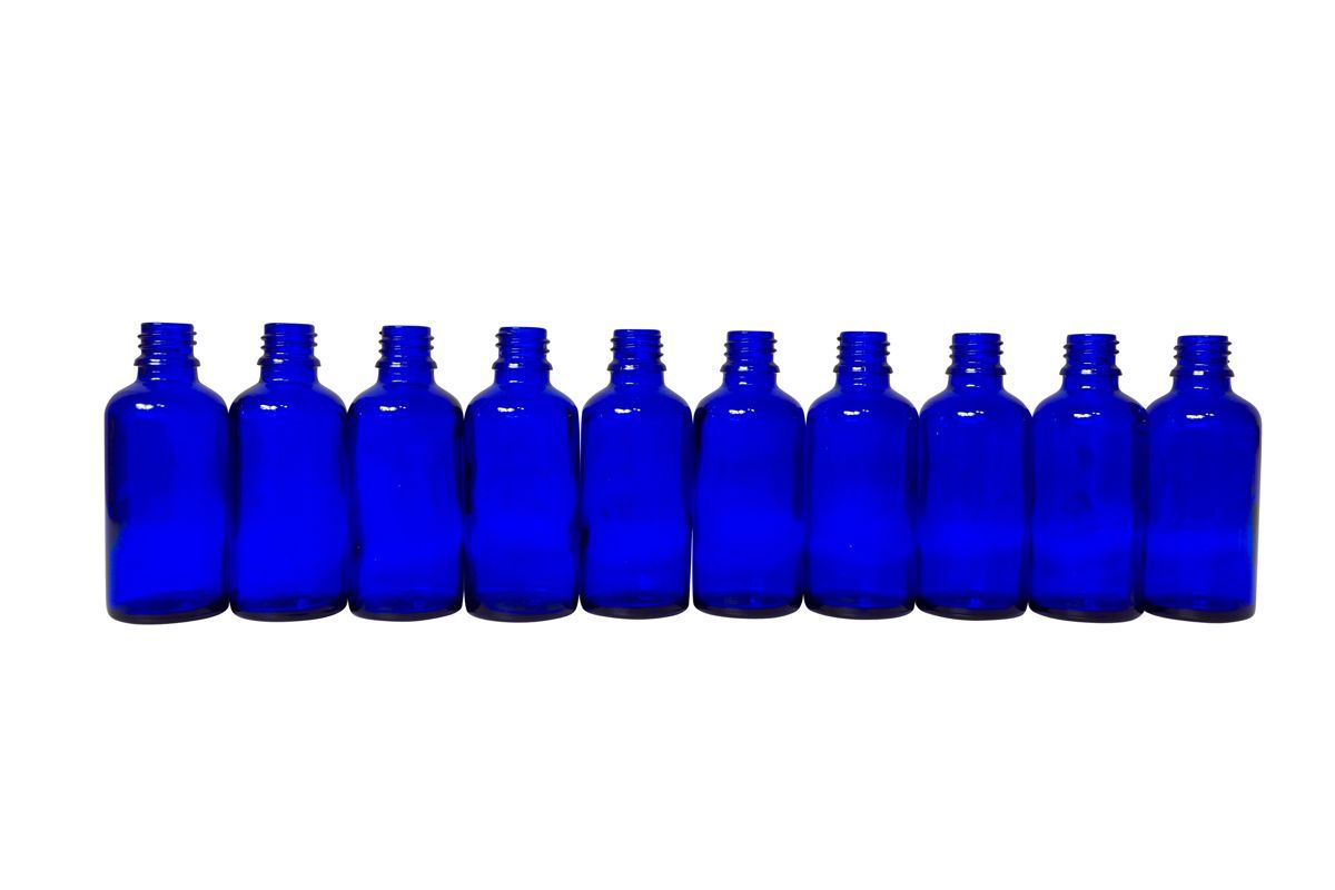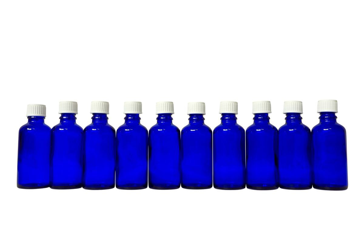 10 x Blauglas Flasche je 50 ml mit DIN18 Gewinde & Deckel