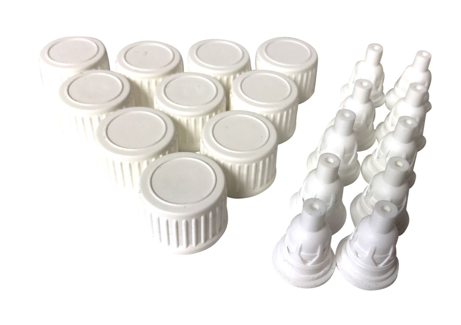 10 x Deckel mit Tropfgarnitur, weiß, für Flaschen mit DIN18 Gewinde