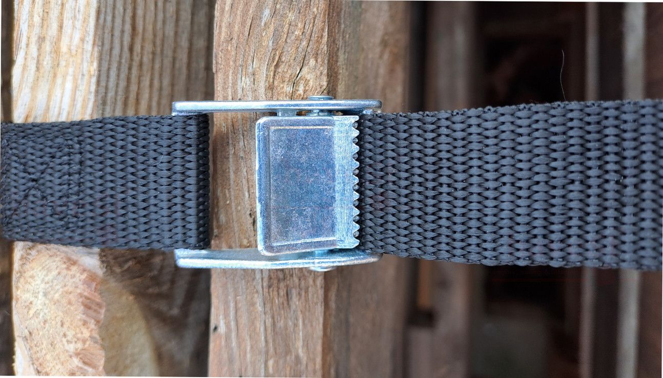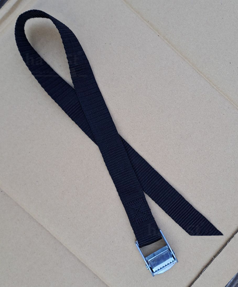 Befestigungsgurt / Gurtschnellverschluß 25 mm , Länge 60 cm , m. Metall-Federklemme , schwarz solides Gurtmaterial , Metall verzinkt