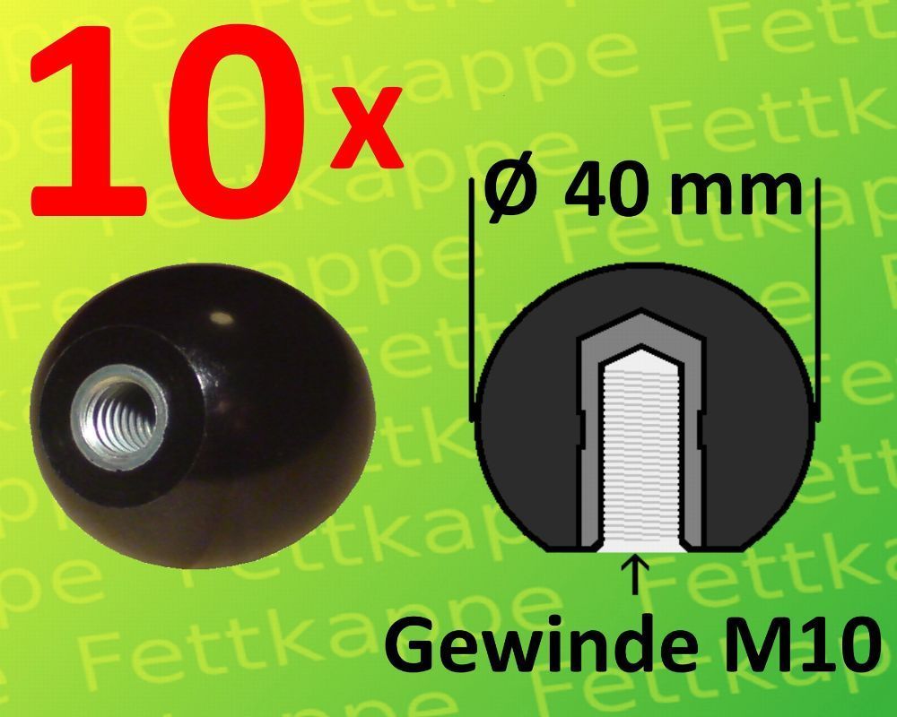 10 x Kugelknopf M10 Ø40mm schwarz - Stahlgewinde Kugelkopf Hebelknopf Schaltknauf